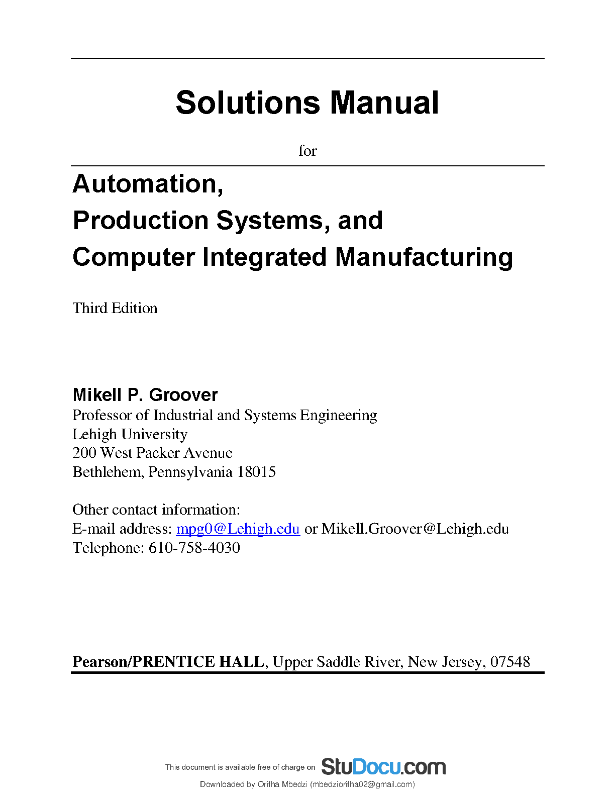 Solutions Manual for Automation, Production Systems, and Computer-Integrated Manufacturing, 5th Edition by Mikell P. Groover