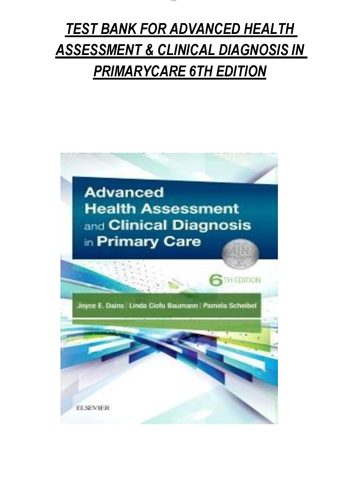 Test Bank for Advanced Health Assessment and Clinical Diagnosis in Primary Care, 6th Edition by Joyce E. Dains, Linda Ciofu Baumann, and Pamela Scheibel