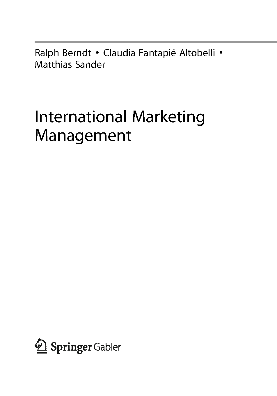 Test Bank for International Marketing Management, 1st Edition by Ralph Berndt, Claudia Fantapié Altobelli, and Matthias Sander