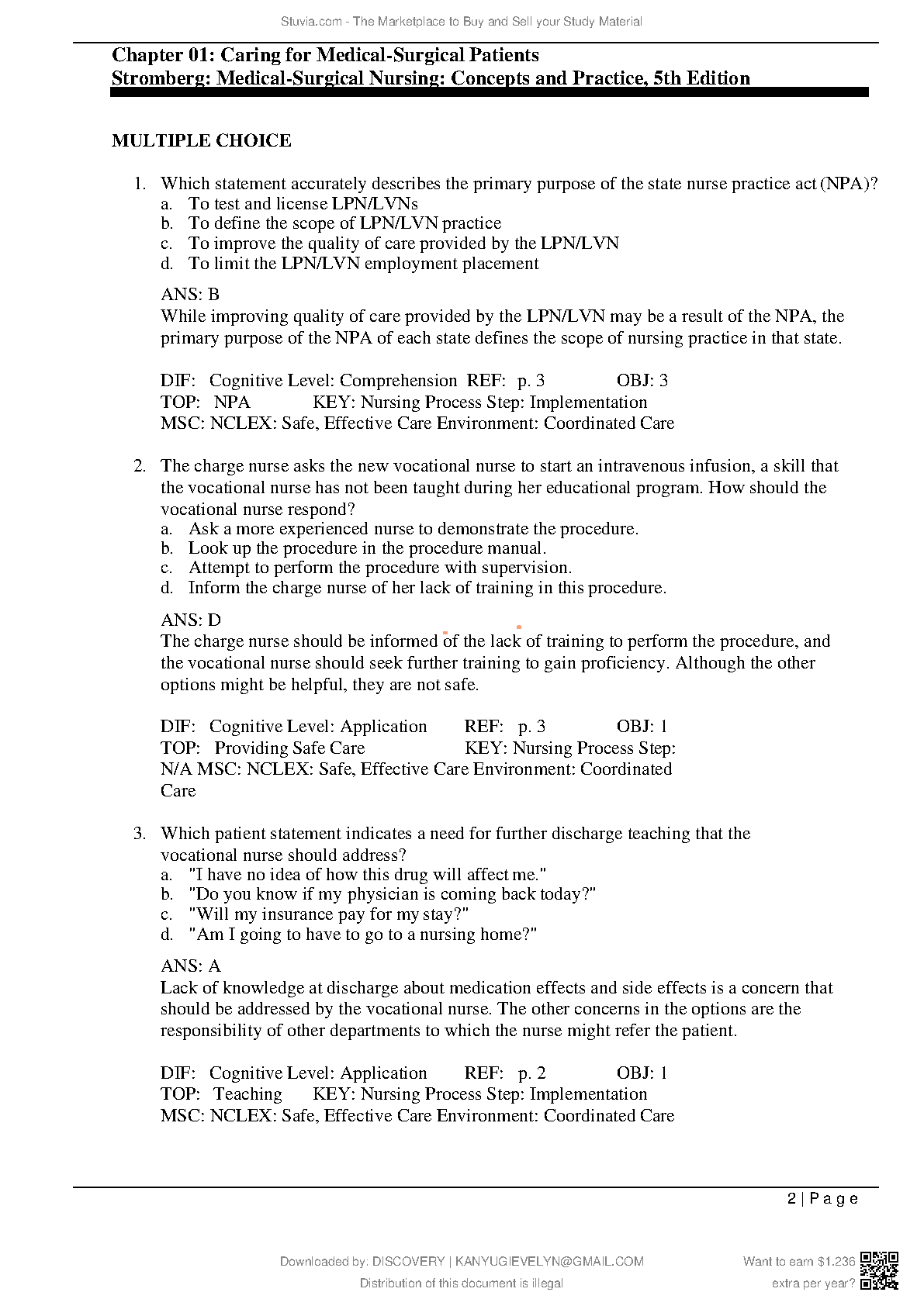 Master your medical-surgical nursing course and excel on your exams with this comprehensive Test Bank for the 5th Edition of 'Medical-Surgical Nursing: Concepts and Practice'. Authored by Stromberg and Herdman, this essential study tool provides hundreds of practice questions and detailed rationales covering every chapter. It's designed to help you deeply understand key concepts, identify areas for improvement, and build confidence for your exams. Ace your course and pass on the first try with this indispensable resource.