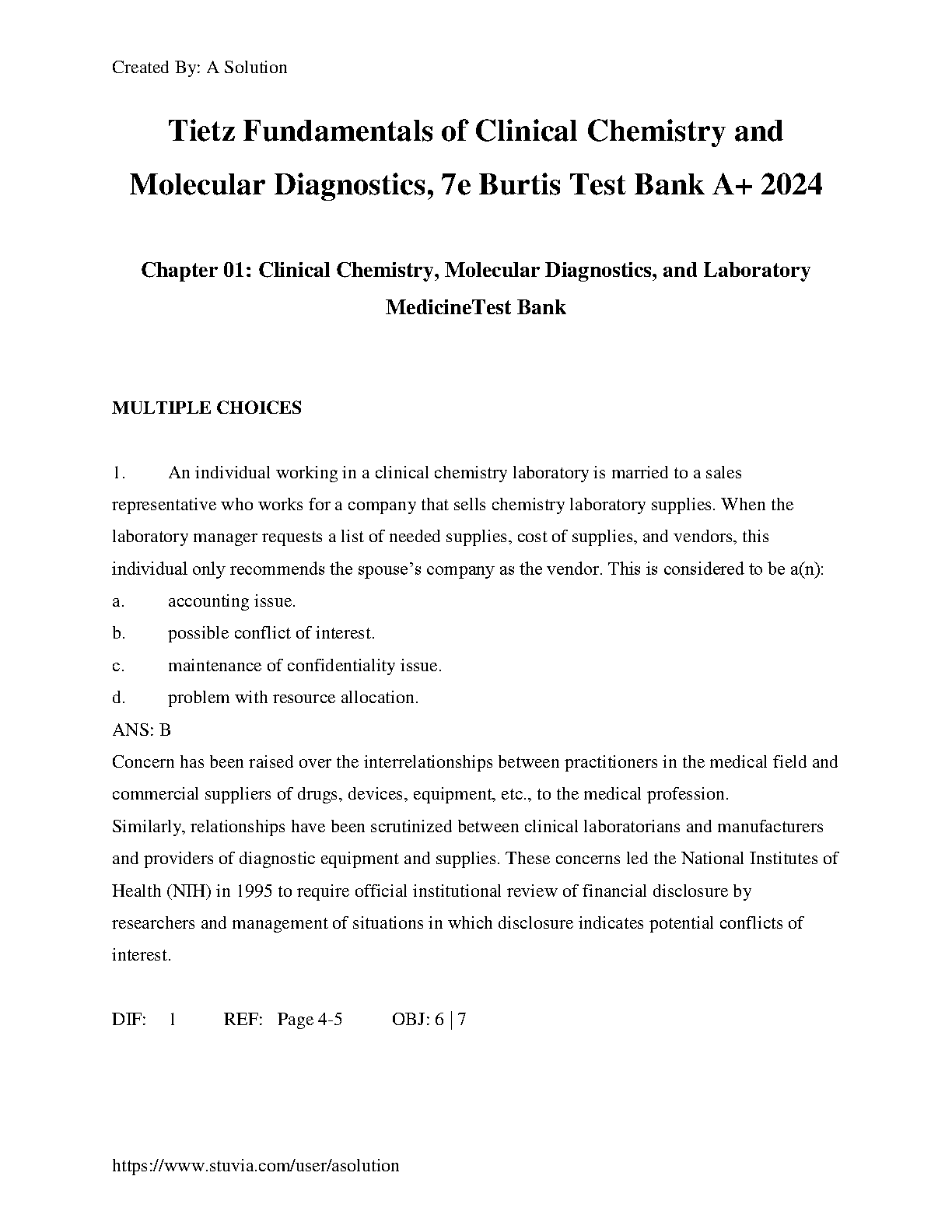 Test Bank for Tietz Fundamentals of Clinical Chemistry and Molecular Diagnostics, 7th Edition by Carl A. Burtis, Edward R. Ashwood, & David E. Bruns
