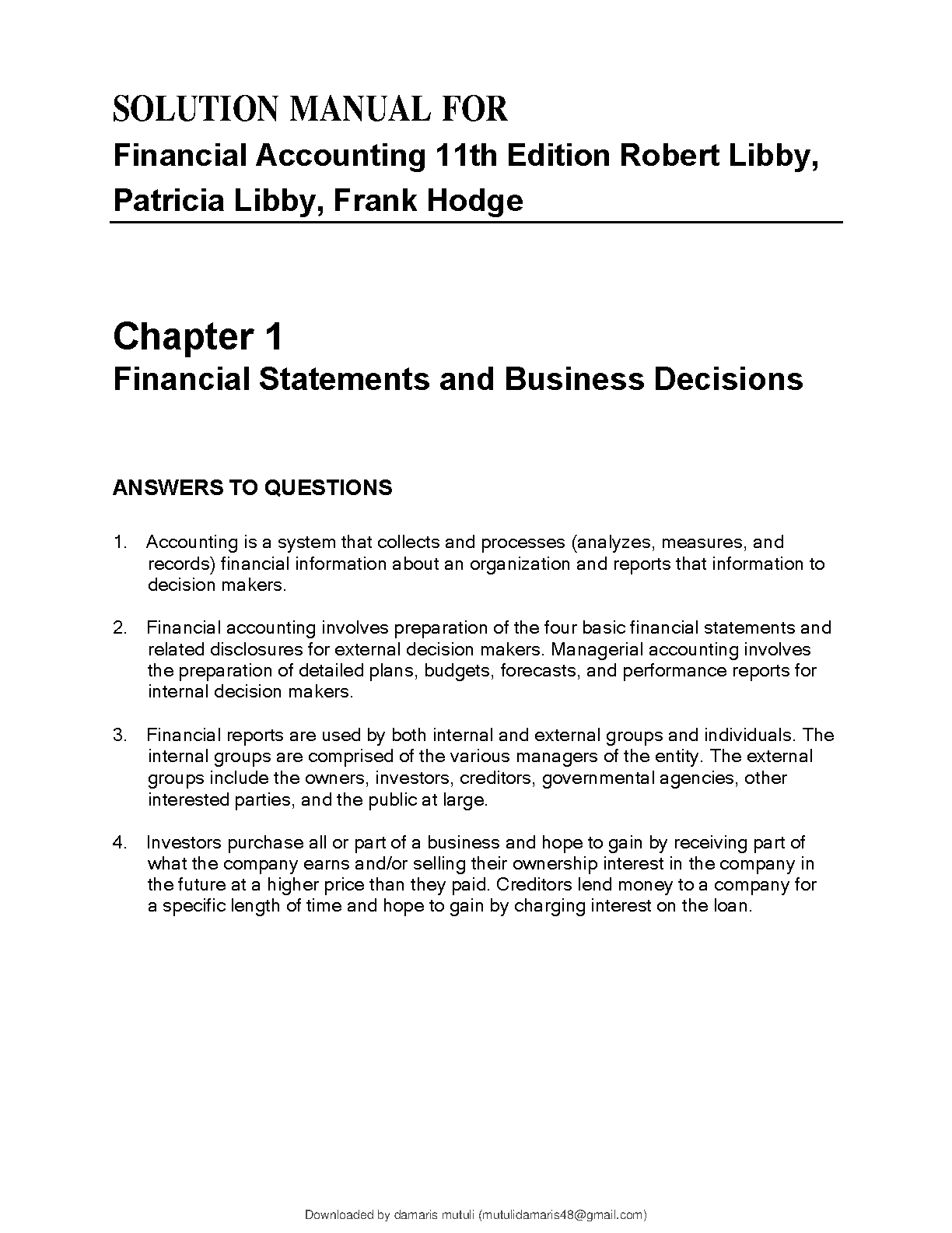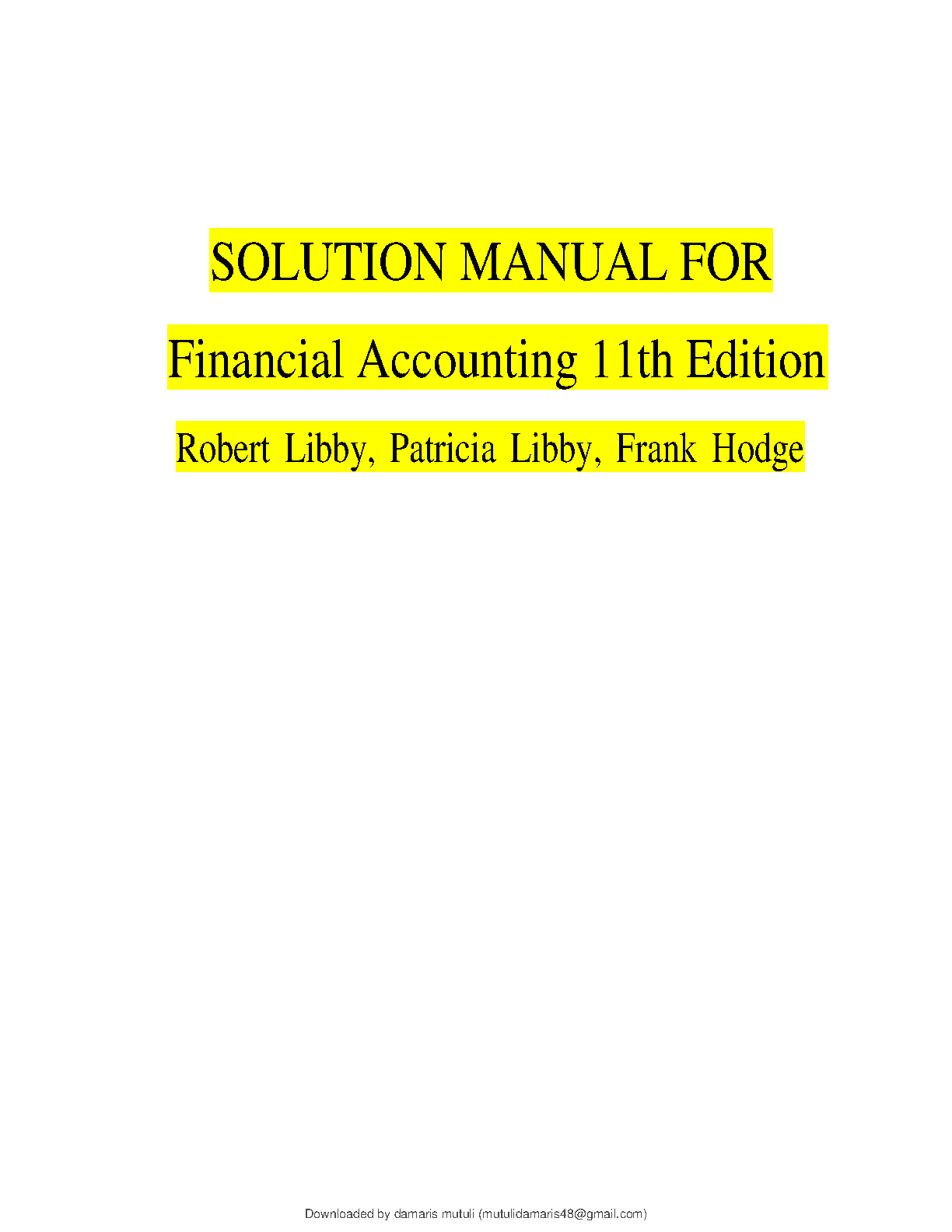 Solution Manual for Financial Accounting, 11th Edition by Robert Libby, Patricia Libby, and Frank Hodge - Complete Chapters 1-13