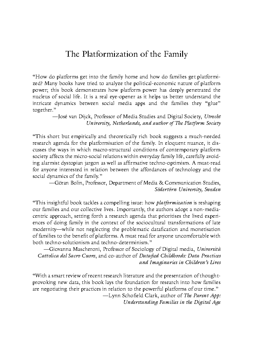 Unlock success in your sociology and media studies exams with our comprehensive guide to 'The Platformization of the Family', 1st Edition, edited by Julian Sefton-Green, Kate Mannell, and Ola Erstad. This newly updated resource for the 2025/2026 academic year delves into the critical impact of digital platforms on modern family life, covering key concepts like platform parenting and datafication. Our expertly curated material is designed to help you grasp complex theories and apply them effectively, ensuring you pass your exams on the first attempt and avoid costly resits. Get the essential insights you need to excel!