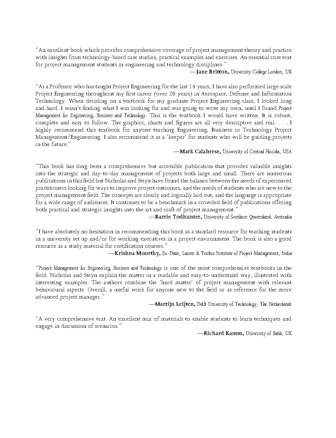Unlock your academic potential with the official Test Bank for the 6th Edition of 'Project Management for Engineering, Business and Technology' by John M. Nicholas and Herman Steyn. This is your essential resource for exam success, featuring a comprehensive collection of questions that cover every key concept from the textbook. From project initiation and planning to execution and closure, this test bank provides a deep dive into the material, helping you master complex topics and test your knowledge effectively. Prepare with confidence, save valuable study time, and achieve the top grades you deserve.