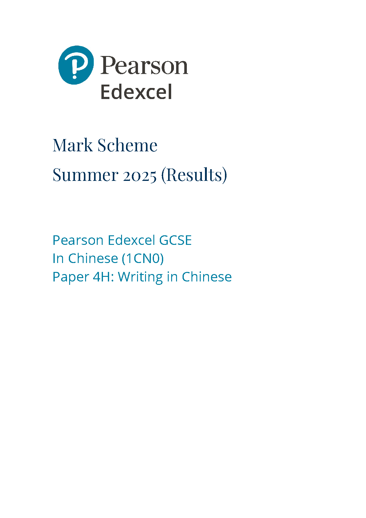 2025 Pearson Edexcel GCSE Chinese Mark Scheme PAPER 4 (1CN0/4H: Writing in Chinese Higher Tier)