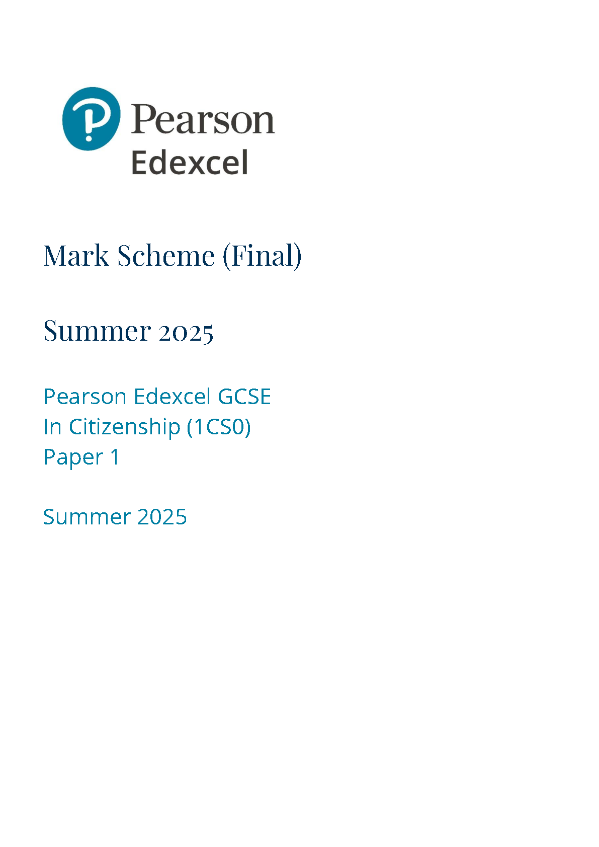 2025 Pearson Edexcel GCSE Citizenship Mark Scheme Paper 1 (1CS0/01)