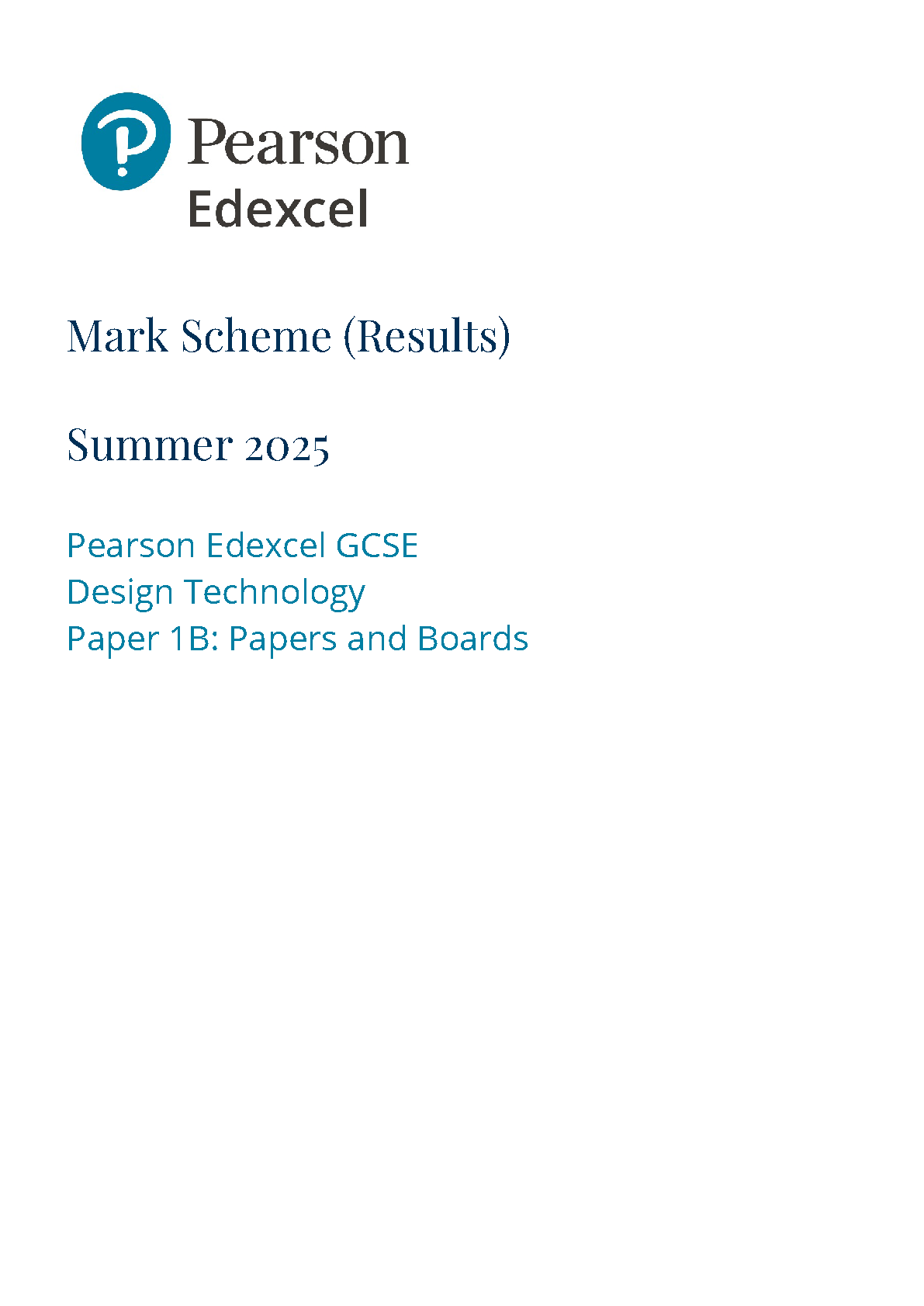 2025 Pearson Edexcel GCSE Design and Technology Mark Scheme COMPONENT 1 (1DT0/1B: Papers and Boards)