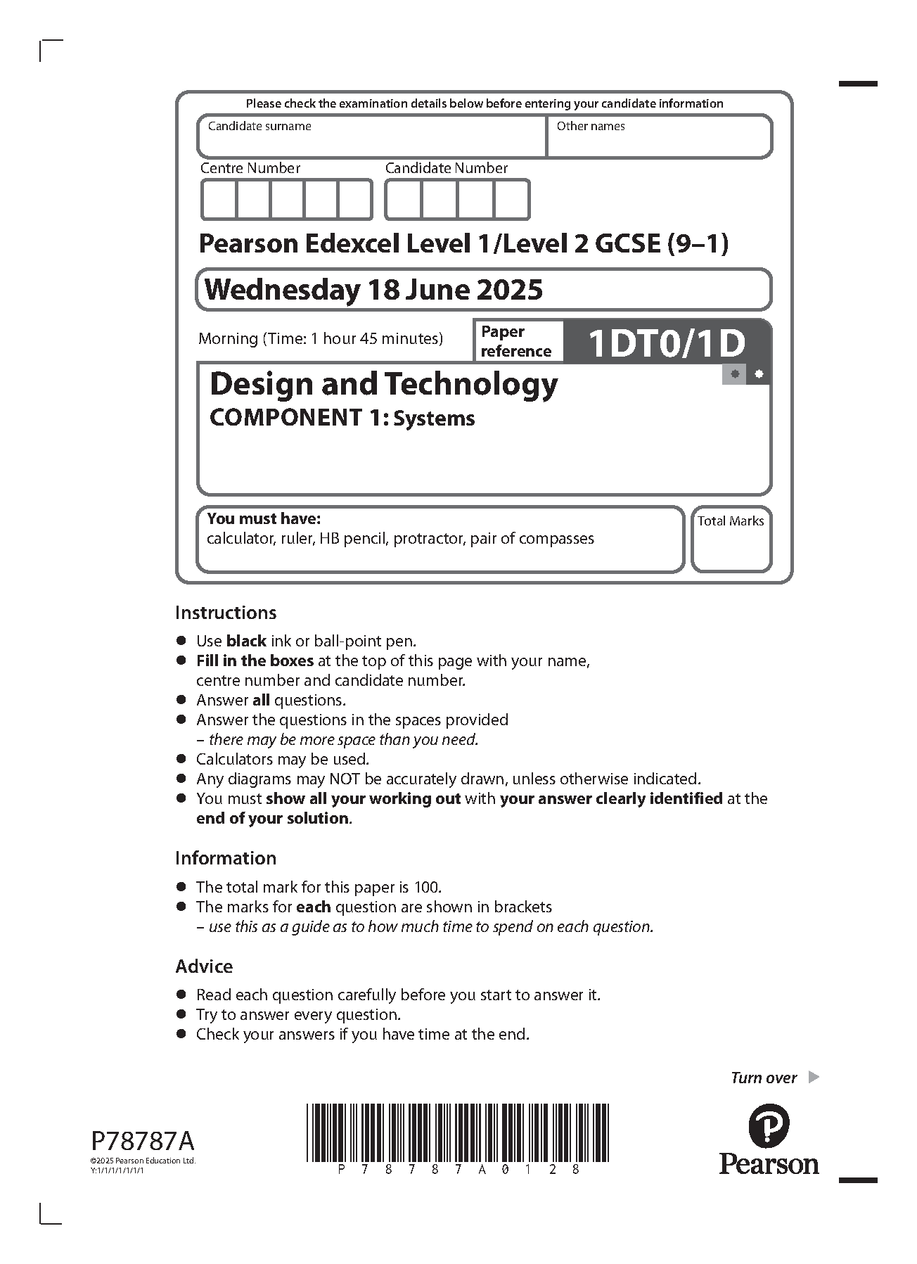 2025 Pearson Edexcel GCSE Design and Technology COMPONENT 1 (1DT0/1D: Systems)