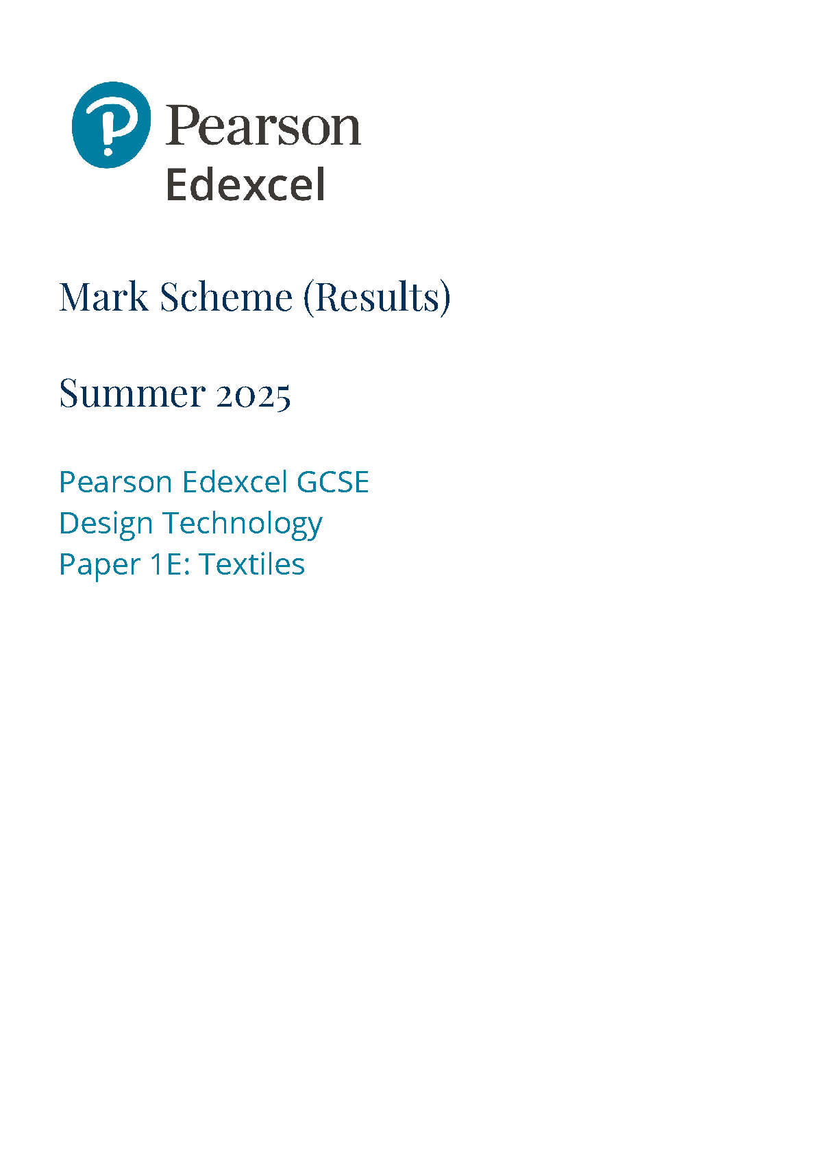 2025 Pearson Edexcel GCSE Design and Technology Mark Scheme COMPONENT 1 (1DT0/1E: Textiles)