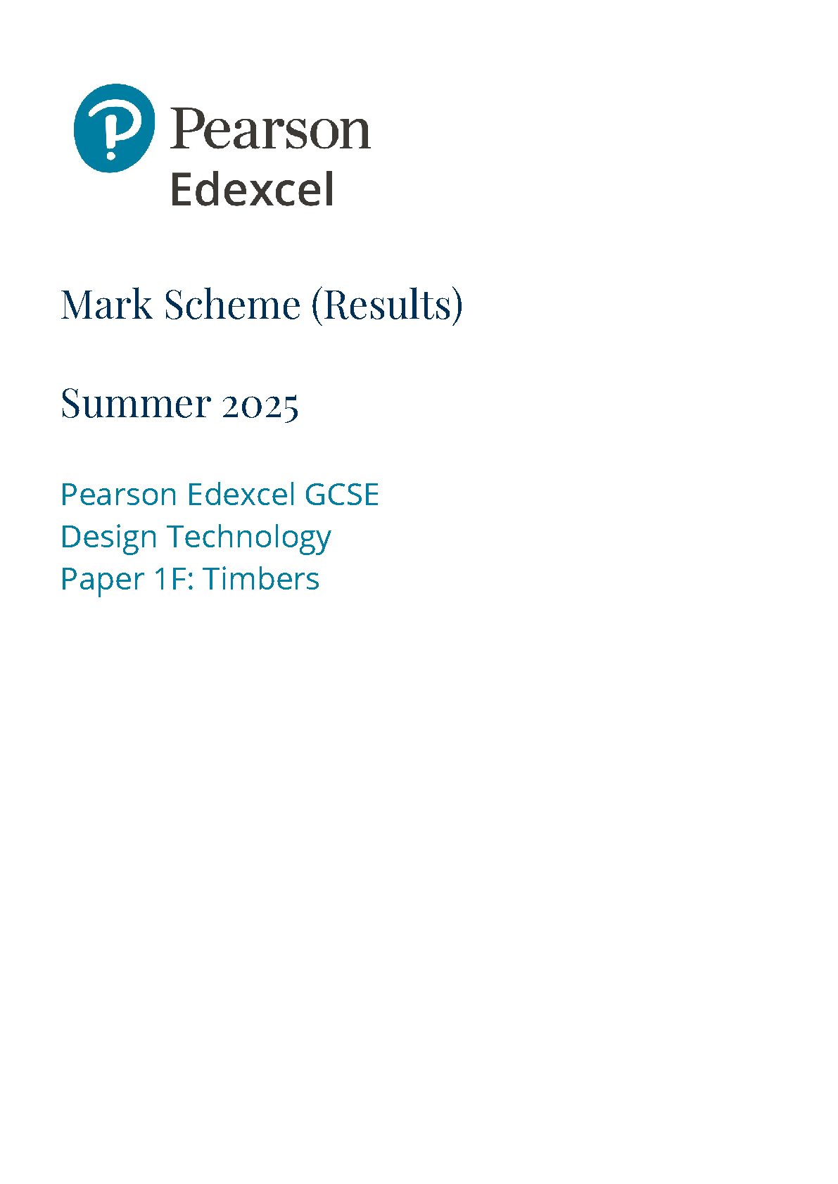 2025 Pearson Edexcel GCSE Design and Technology Mark Scheme COMPONENT 1 (1DT0/1F: Timbers)