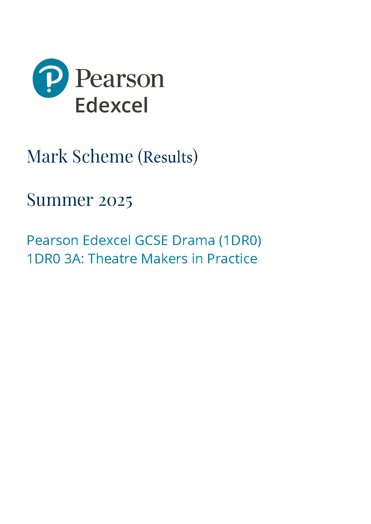 2025 Pearson Edexcel GCSE Drama Mark Scheme COMPONENT 3 (1DR0/3A: Theatre Makers in Practice)