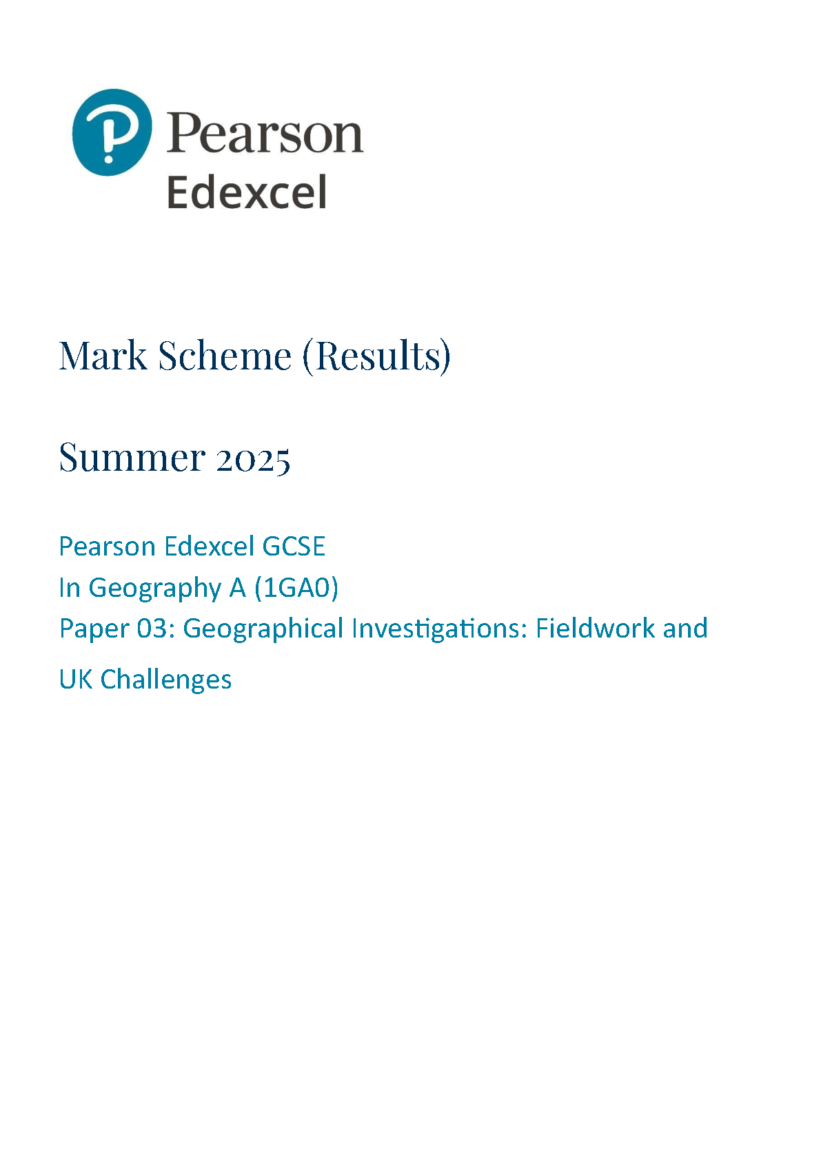2025 Pearson Edexcel GCSE Geography A Mark Scheme PAPER 3 (1GA0/03: Geographical Investigations Fieldwork and UK Challenges)