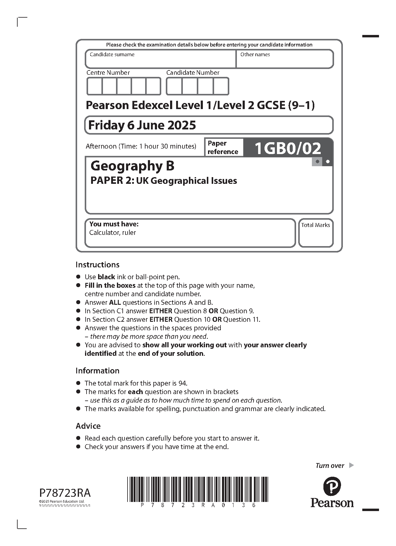 2025 Pearson Edexcel GCSE Geography B PAPER 2 (1GB0/02: UK Geographical Issues)