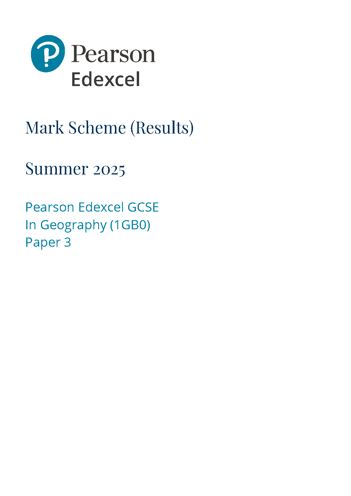 2025 Pearson Edexcel GCSE Geography B Mark Scheme PAPER 3 (1GB0/03: People and Environmental issues Making Geographical Decisions)