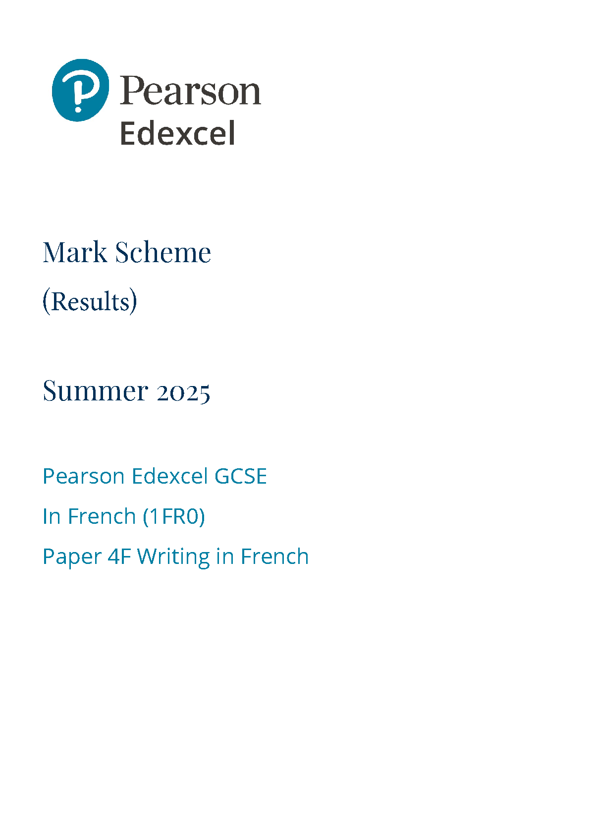 2025 Pearson Edexcel GCSE French Mark Scheme PAPER 4 (1FR0/4F: Reading and understanding in French Foundation Tier)