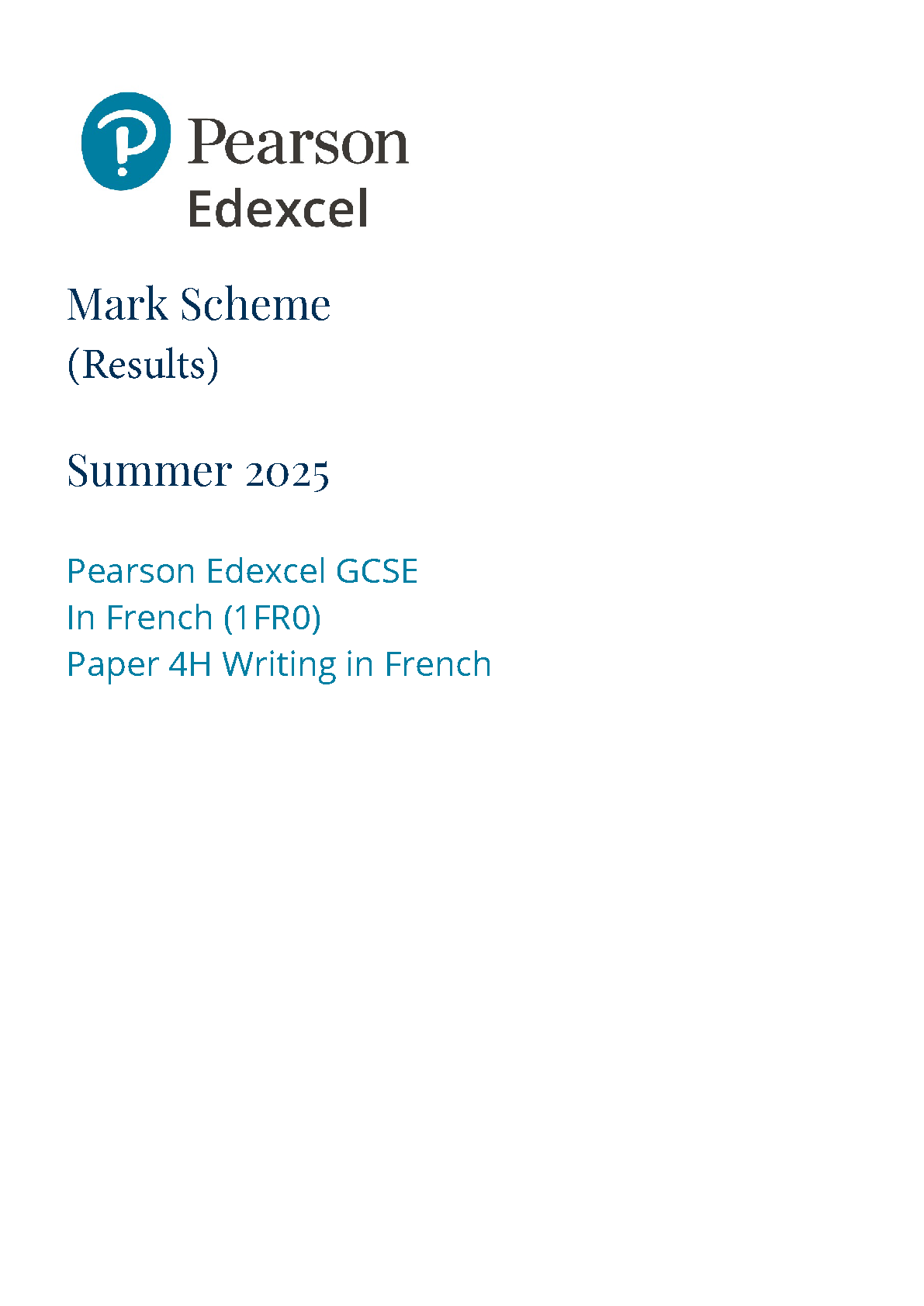 2025 Pearson Edexcel GCSE French Mark Scheme PAPER 4 (1FR0/4H: Reading and understanding in French Higher Tier)