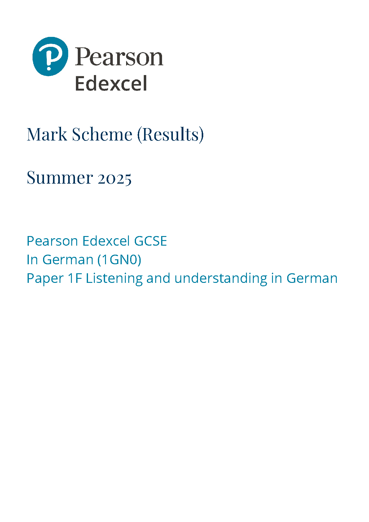 2025 Pearson Edexcel GCSE German Mark Scheme PAPER 1 (1GN0/1F: Listening and understanding in German Foundation Tier)