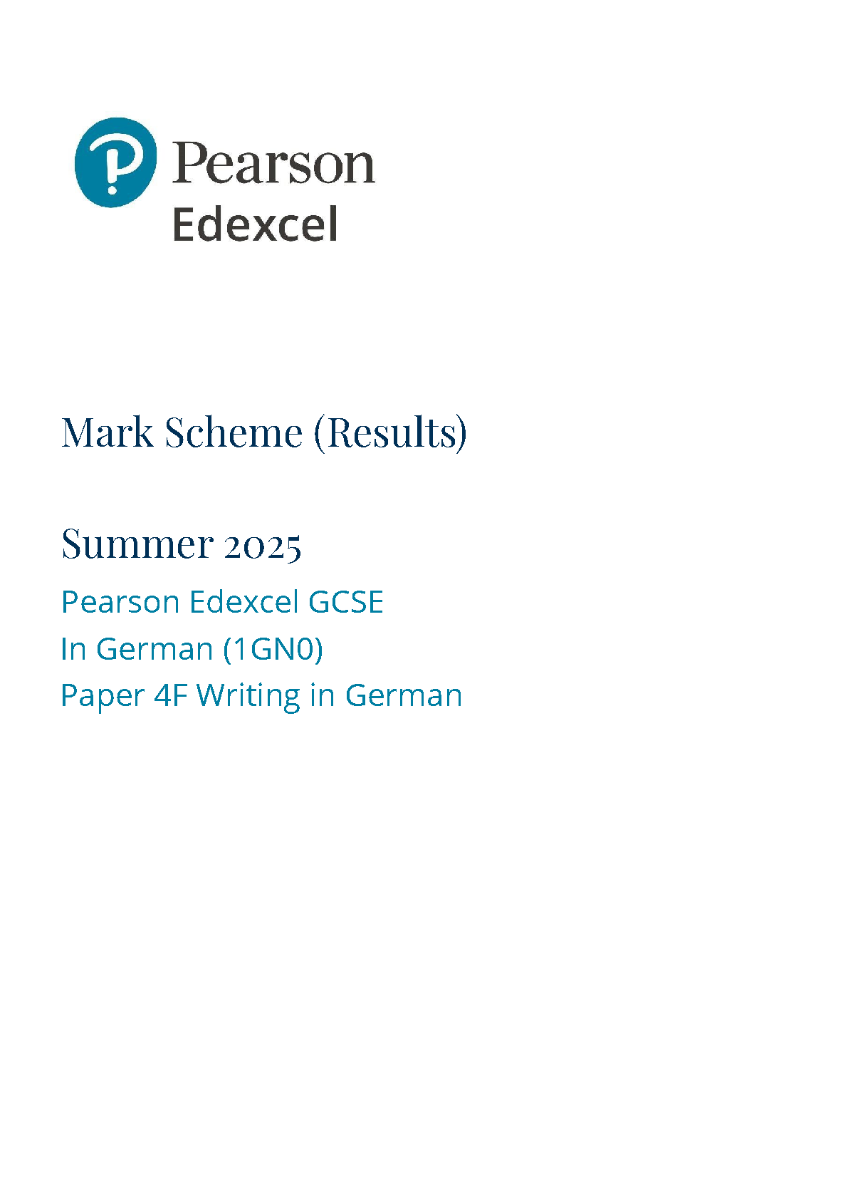2025 Pearson Edexcel GCSE German Mark Scheme PAPER 4 (1GN0/4F: Writing in German Foundation Tier)