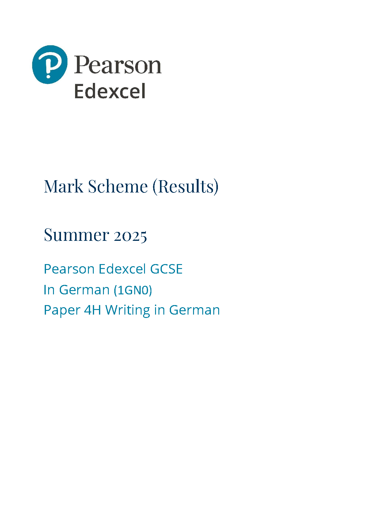 2025 Pearson Edexcel GCSE German Mark Scheme PAPER 4 (1GN0/4H: Writing in German Foundation Tier)