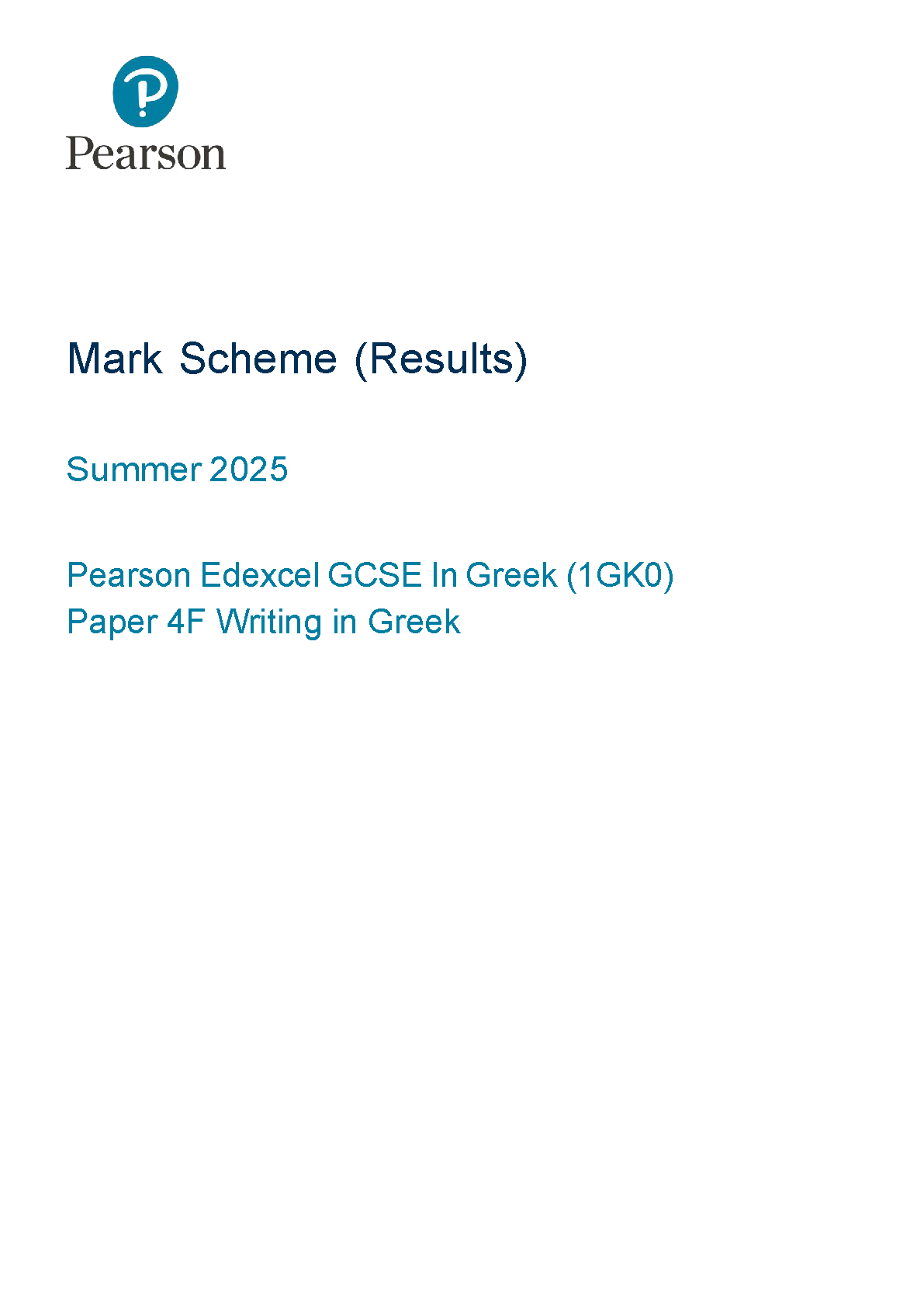 2025 Pearson Edexcel GCSE Greek Mark Scheme PAPER 4 (1GK0/4F: Writing in Greek Foundation Tier)