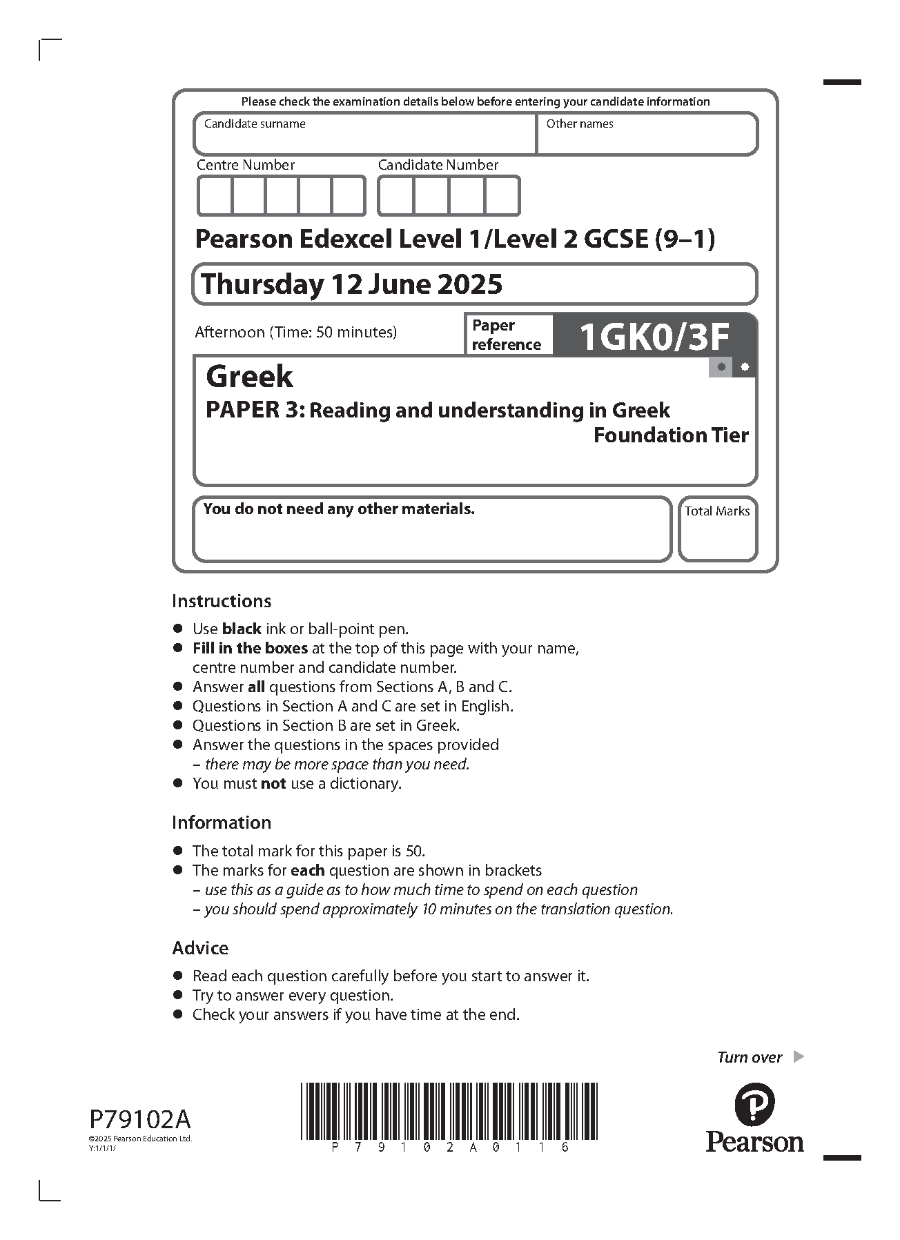 2025 Pearson Edexcel GCSE Gujarati Paper 3 (1GU0/3F: Reading and understanding in Gujarati Foundation Tier)