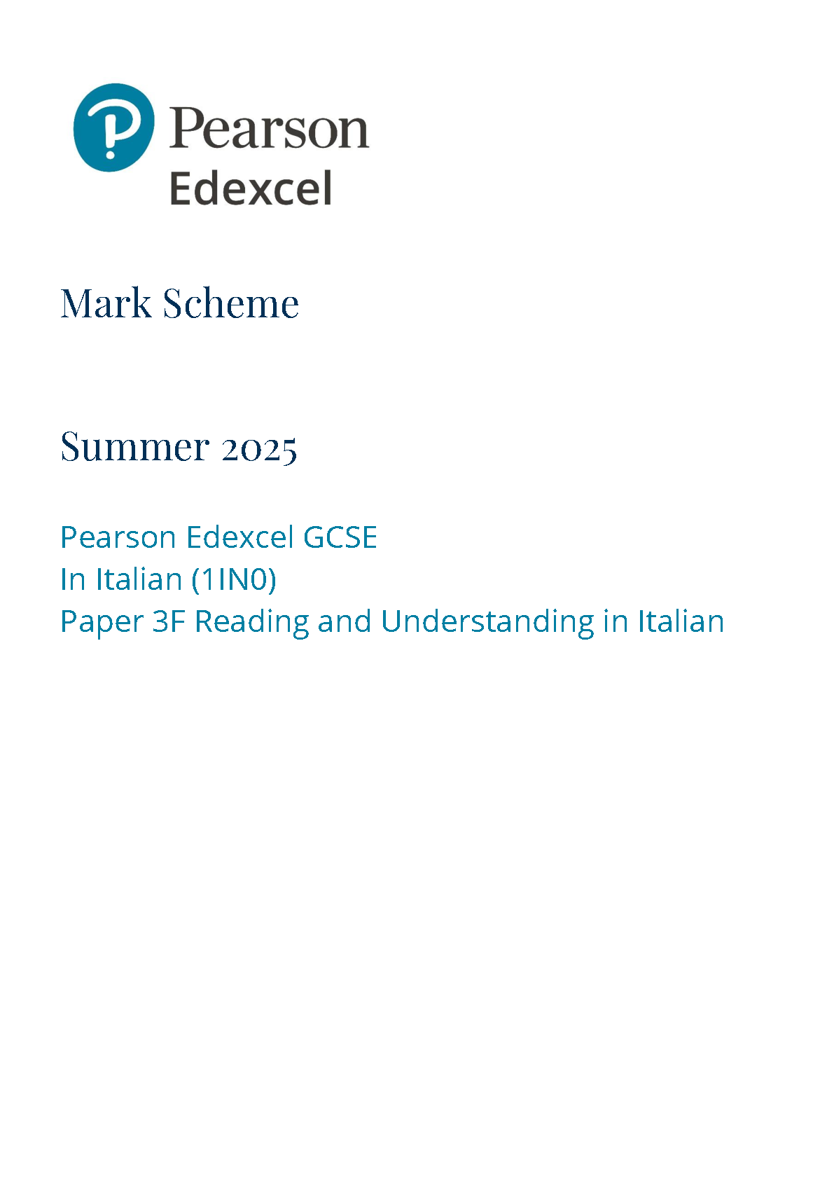 2025 Pearson Edexcel GCSE Italian Mark Scheme Paper 3 (1IN0/3F: Reading and understanding in Italian Foundation Tier)