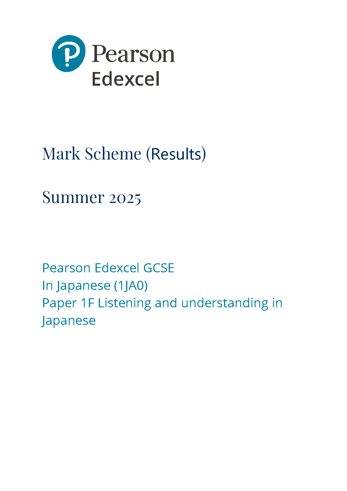 2025 Pearson Edexcel GCSE Japanese Mark Scheme Paper 1 (1JA0/1F: Listening and understanding in Japanese Foundation Tier)