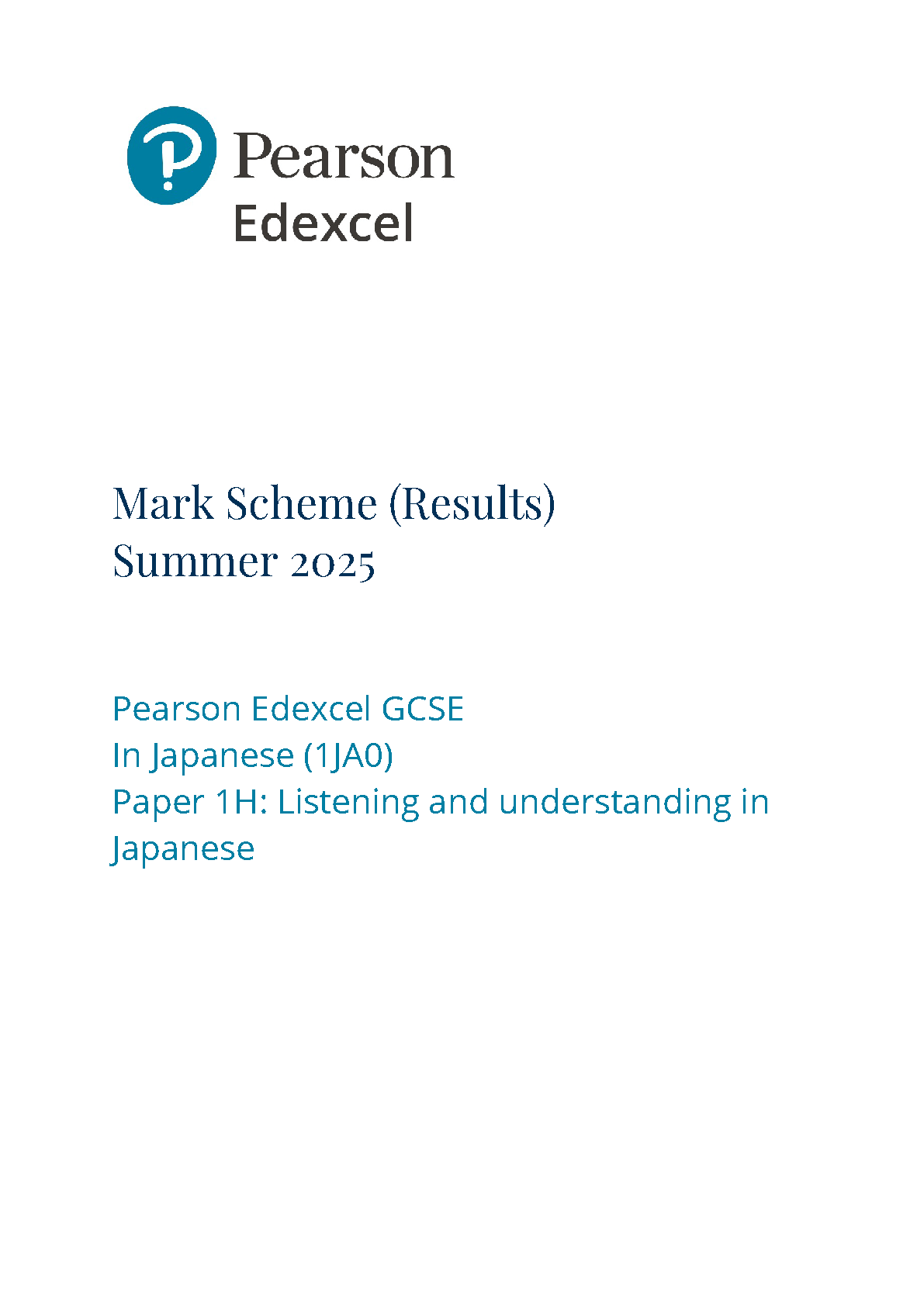 2025 Pearson Edexcel GCSE Japanese Mark Scheme Paper 1 (1JA0/1H: Listening and understanding in Japanese Foundation Tier)