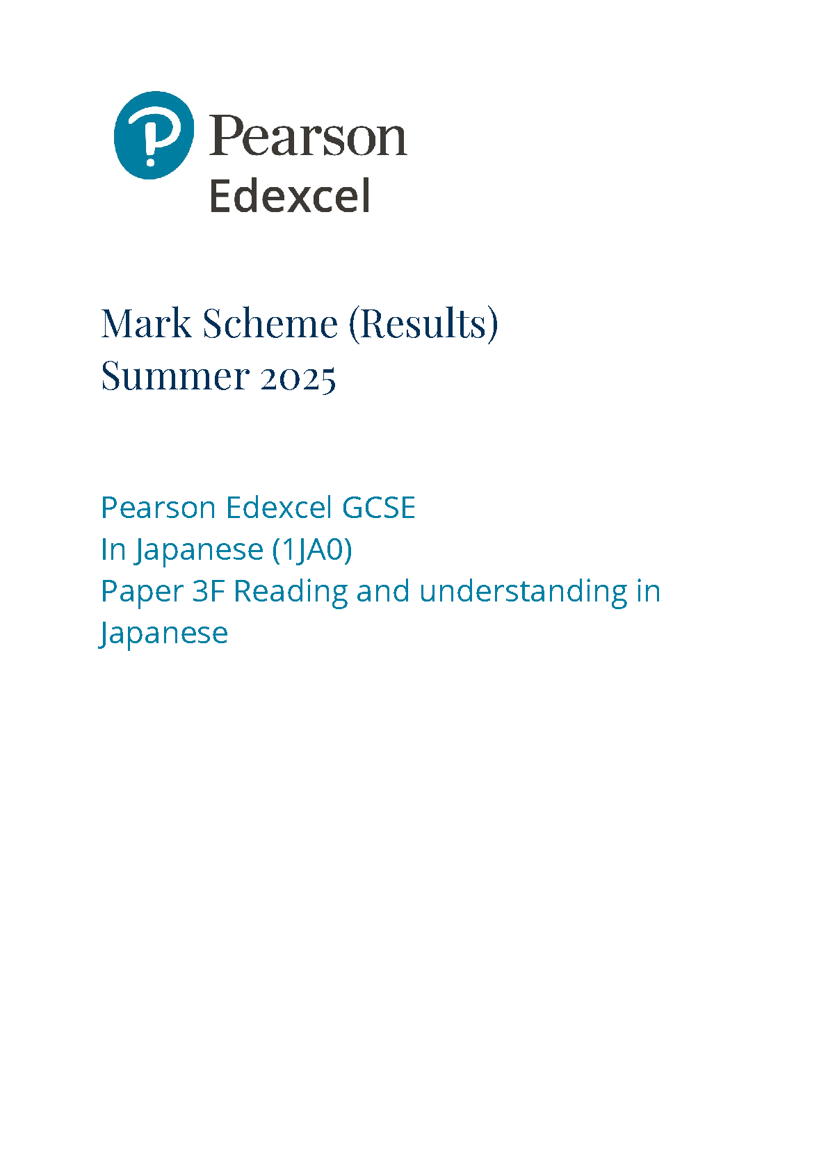 2025 Pearson Edexcel GCSE Japanese Mark Scheme Paper 3 (1JA0/3F: Reading and understanding in Japanese Foundation Tier)