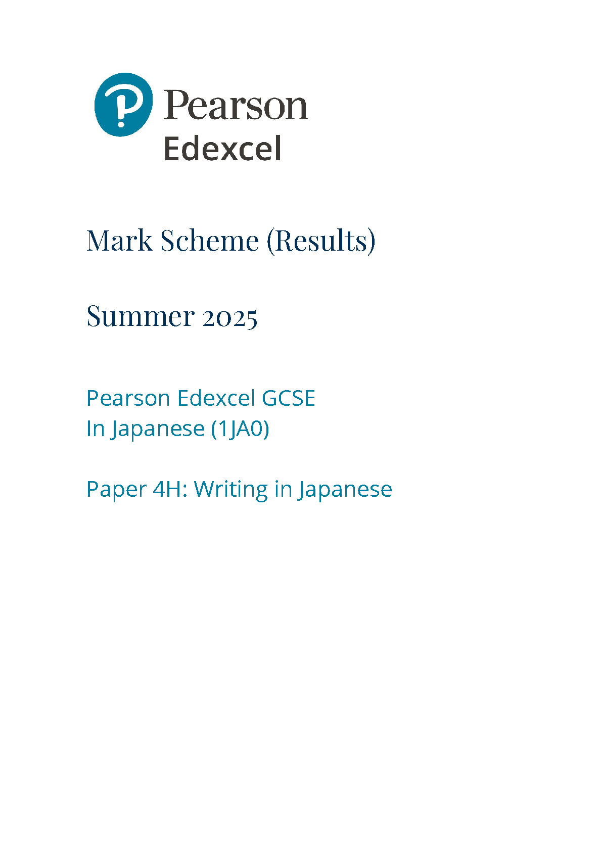 2025 Pearson Edexcel GCSE Japanese Mark Scheme Paper 4 (1JA0/4H : Writing in Japanese Higher Tier)