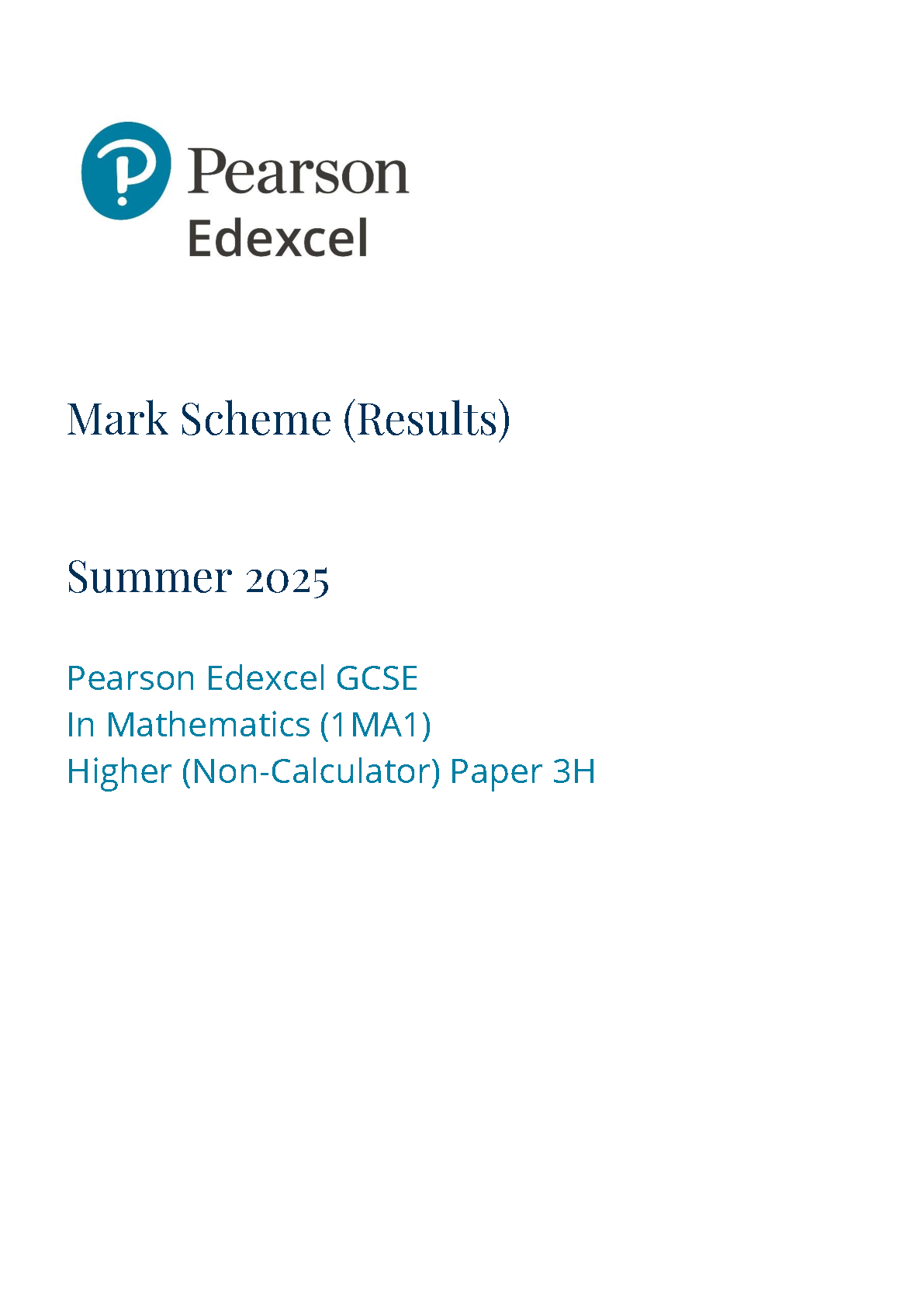 2025 Pearson Edexcel GCSE Mathematics Mark Scheme PAPER 3 (1MA1/3H: Calculator Higher Tier)