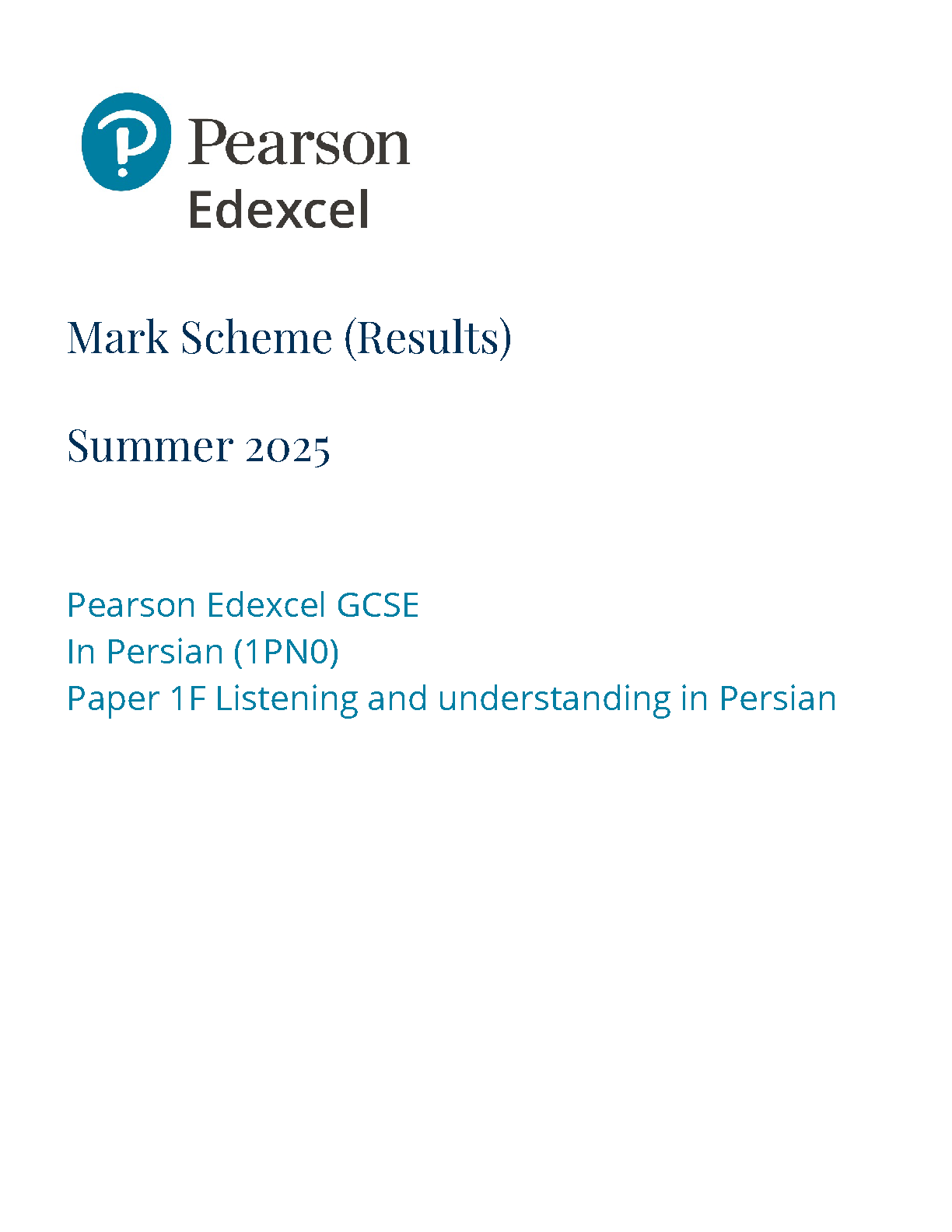 2025 Pearson Edexcel GCSE Persian Mark Scheme Paper 1 (1PN0/1F: Listening and understanding in Persian Foundation Tier)