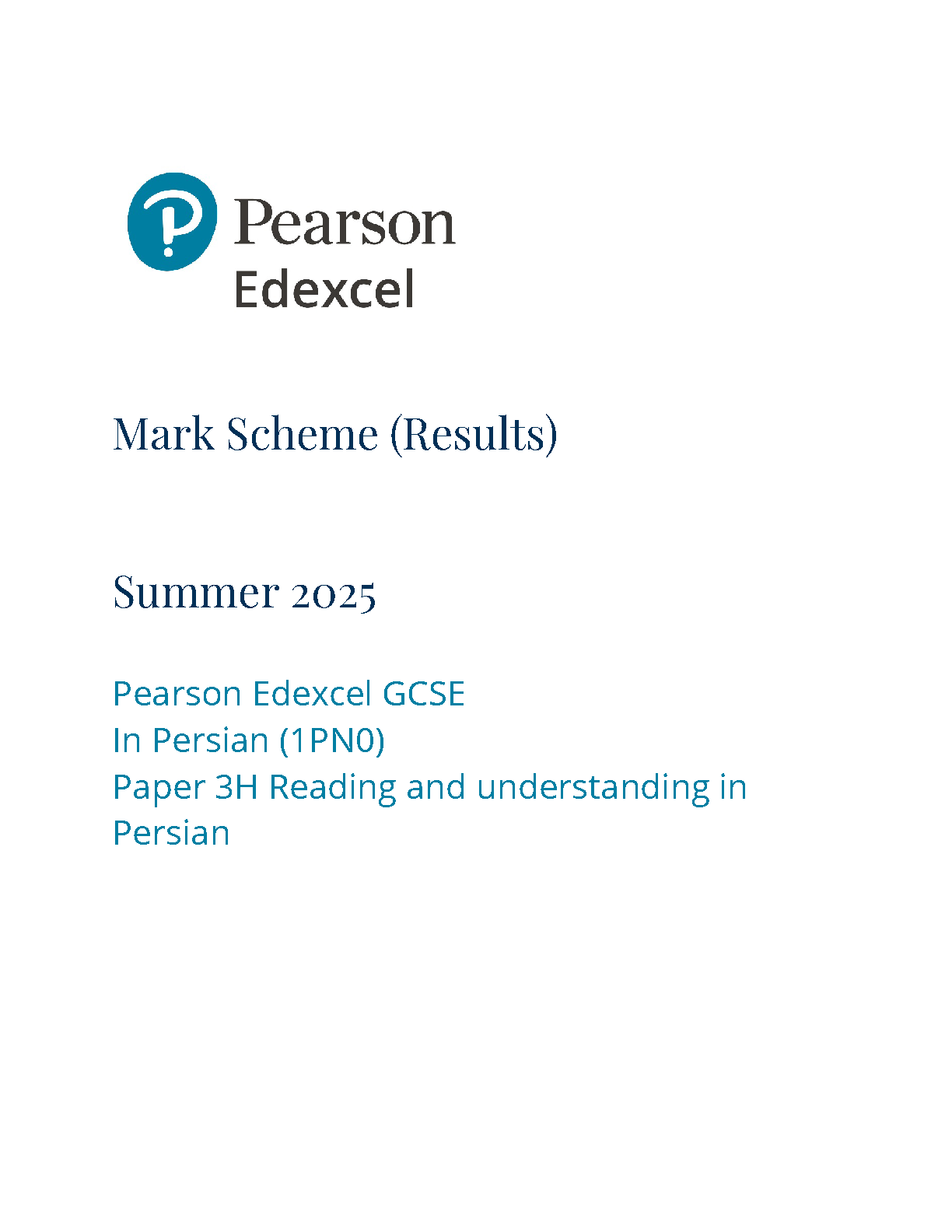 2025 Pearson Edexcel GCSE Persian Mark Scheme Paper 3 (1PN0/3H: Reading and understanding in Persian Higher Tier)