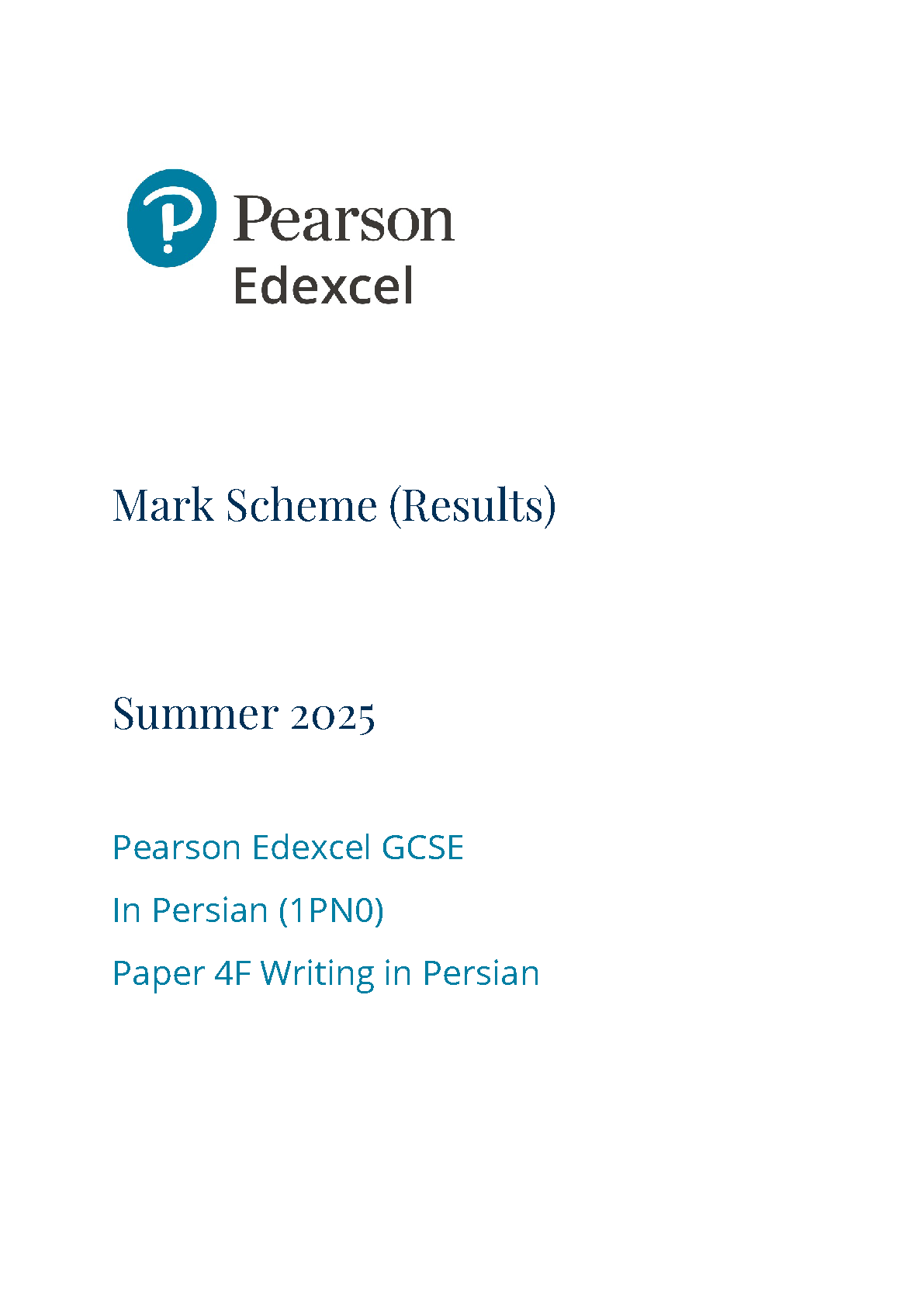 2025 Pearson Edexcel GCSE Persian Mark Scheme Paper 4 (1PN0/4F: Writing in Persian Foundation Tier)
