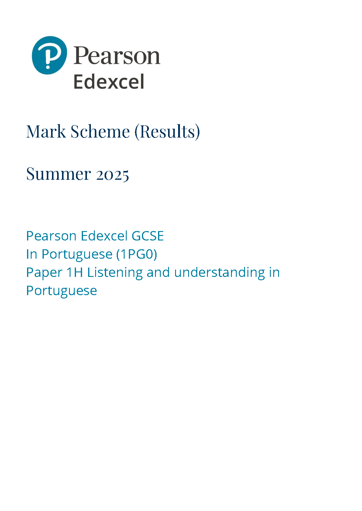 2025 Pearson Edexcel GCSE Portuguese Mark Scheme Paper 1 (1PG0/1H: Listening and understanding in Portuguese Higher Tier)