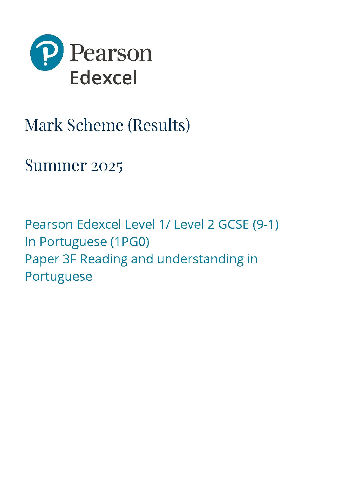 2025 Pearson Edexcel GCSE Portuguese Mark Scheme Paper 3 (1PG0/3F: Reading and understanding in Portuguese Foundation Tier)