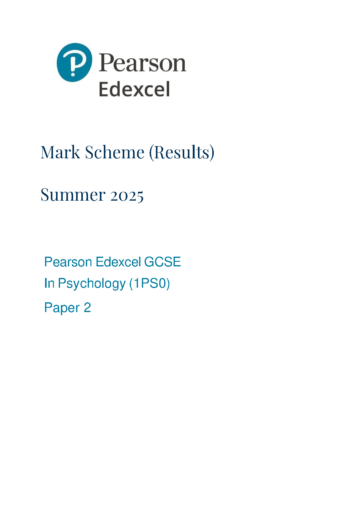 2025 Pearson Edexcel GCSE Psychology Mark Scheme Paper 2 (1PS0/02)