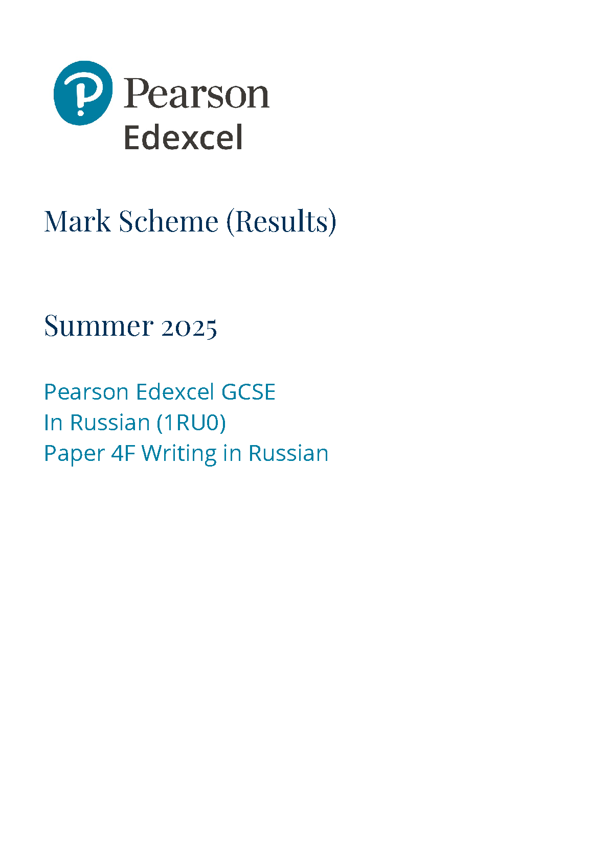 2025 Pearson Edexcel GCSE Russian Mark Scheme Paper 4 (1RU0/4F: Writing in Russian Foundation tier)