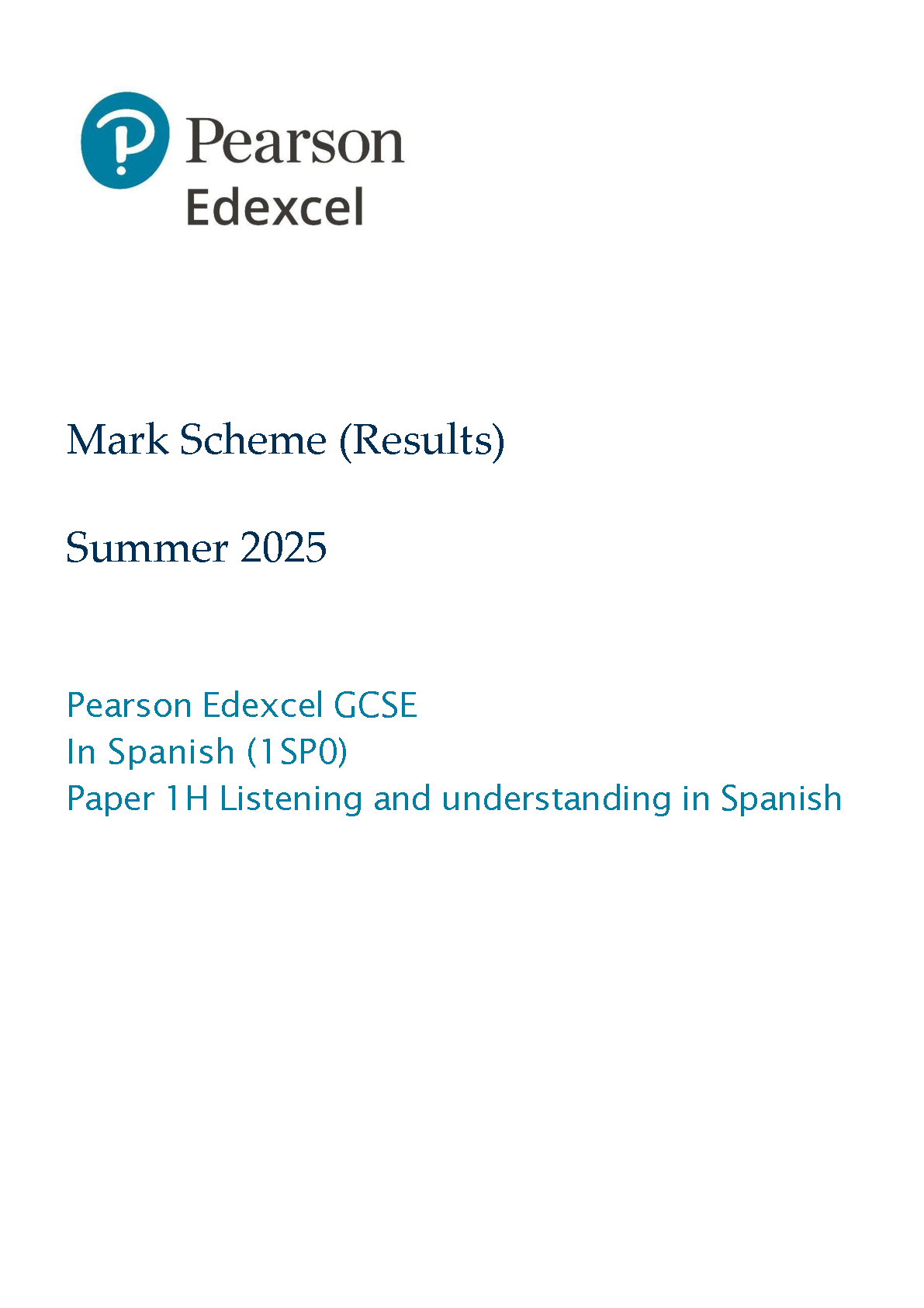 2025 Pearson Edexcel GCSE Spanish Mark Scheme Paper 1 (1SP0/1H: Listening and understanding in Spanish Higher Tier)