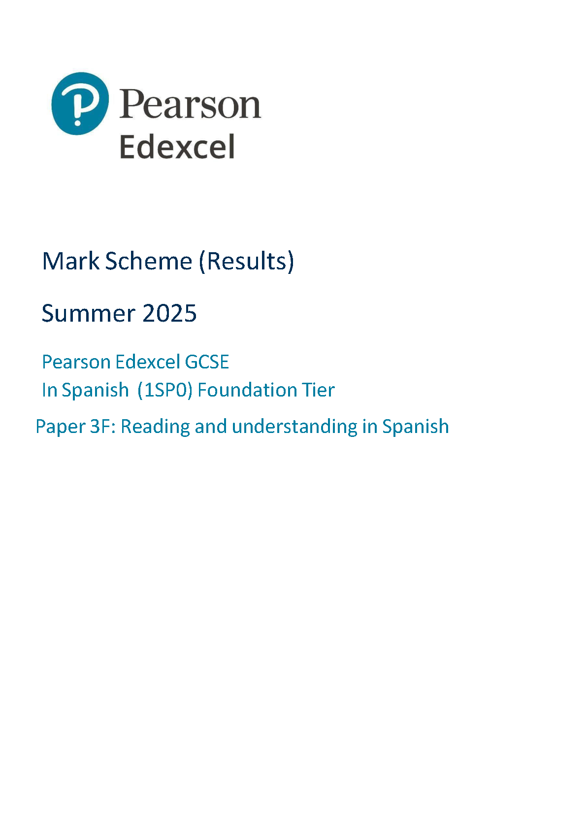 2025 Pearson Edexcel GCSE Spanish Mark Scheme Paper 3 (1SP0/3F: Reading and understanding in Spanish Foundation Tier)