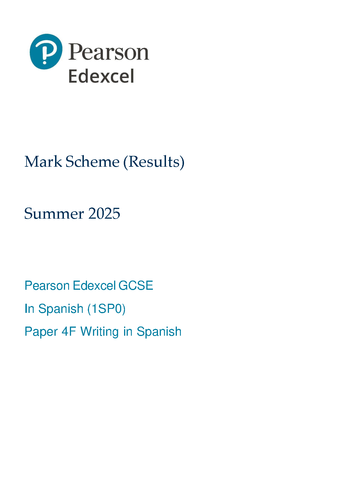2025 Pearson Edexcel GCSE Spanish Mark Scheme Paper 4 (1SP0/4F: Writing in Spanish Foundation Tier)