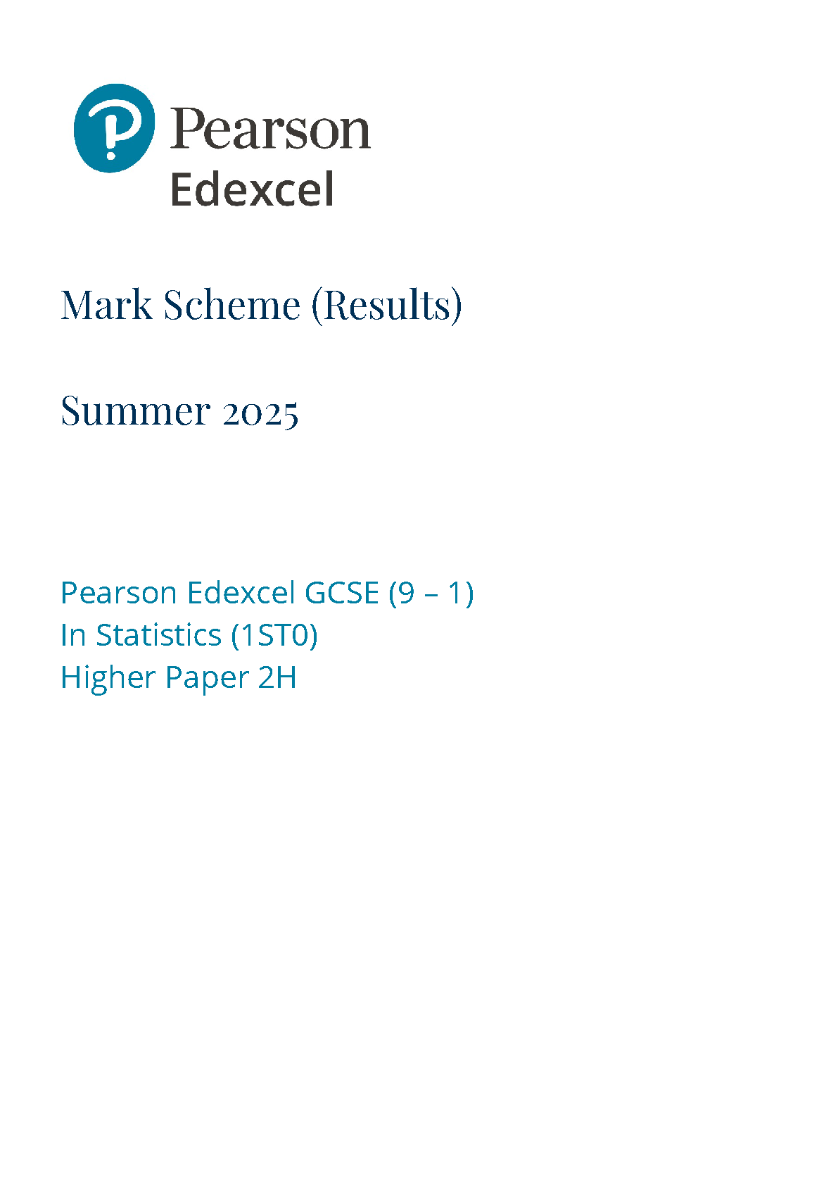2025 Pearson Edexcel GCSE Statistics Mark Scheme Paper 2 (1ST0/2H: Higher Tier)