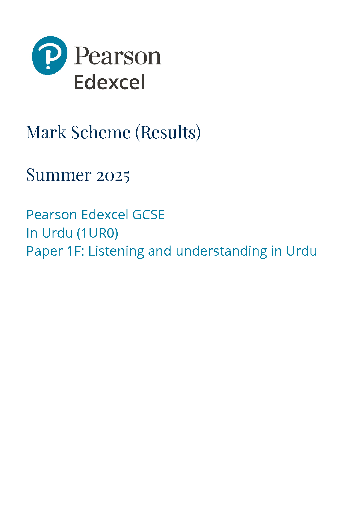2025 Pearson Edexcel GCSE Urdu Mark Scheme Paper 1 (1UR0/1F: Listening and understanding in Urdu Foundation Tier)