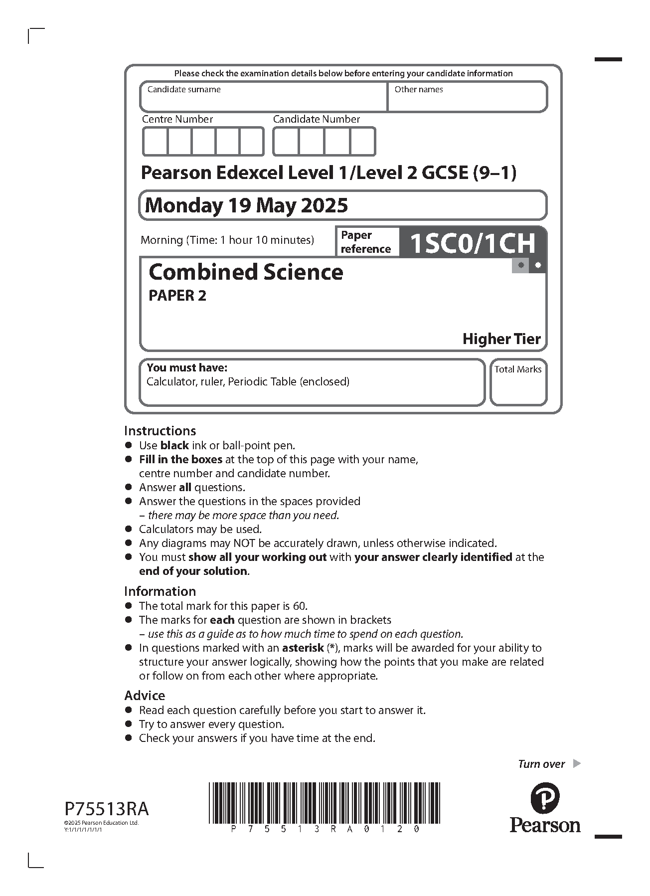 2025 Pearson Edexcel GCSE Combined Science Paper 2 (1SC0/1CH)