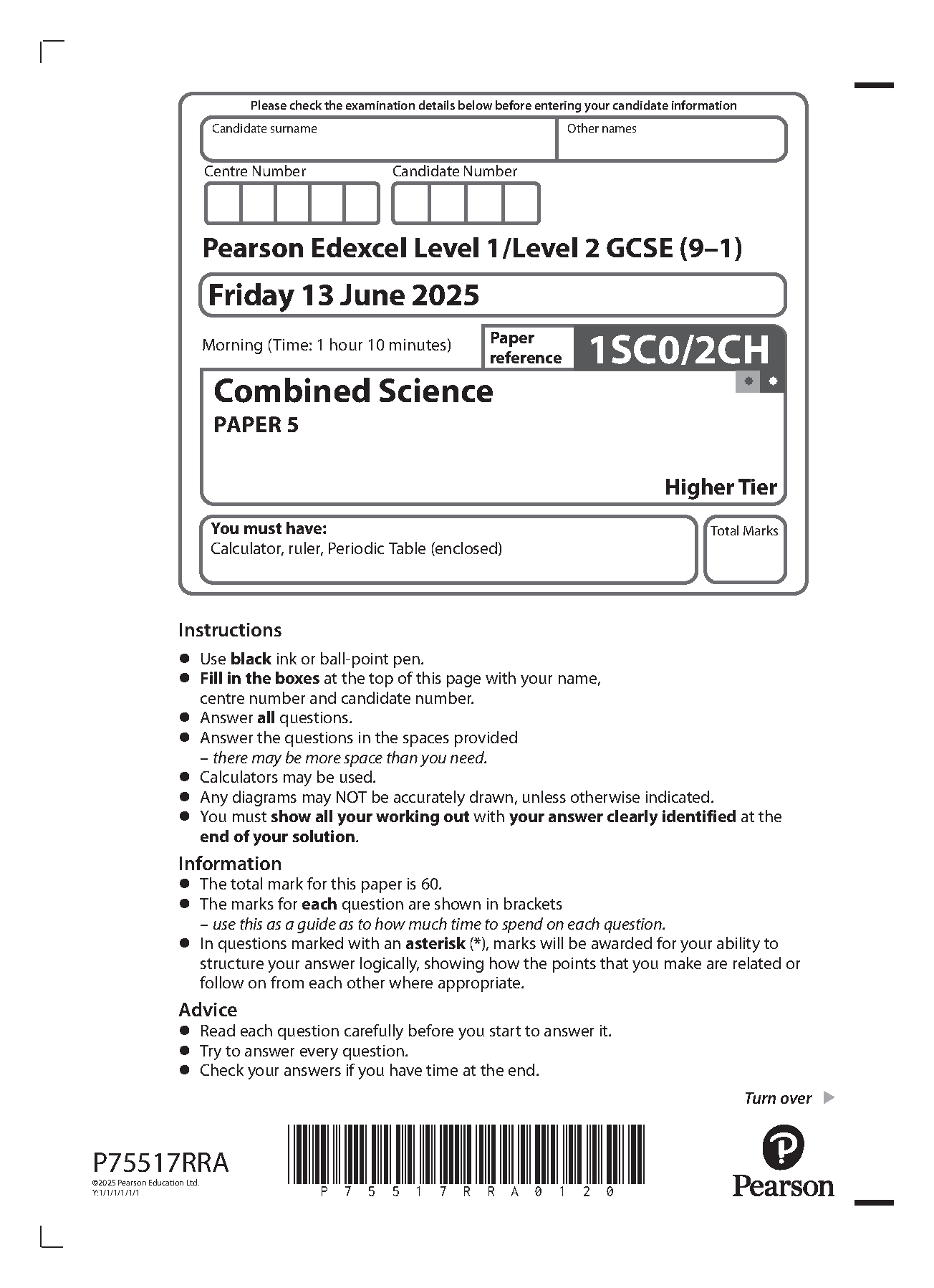 2025 Pearson Edexcel GCSE Combined Science Chemistry Paper 5 ((1SC0/2CH)