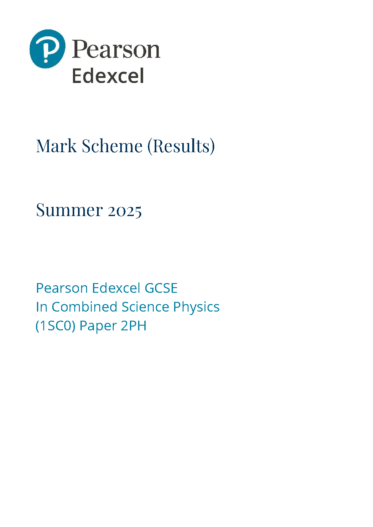 2025 Pearson Edexcel GCSE Combined Science Physics Mark Scheme Paper 6 (1SC0/2PH: Higher Tier)