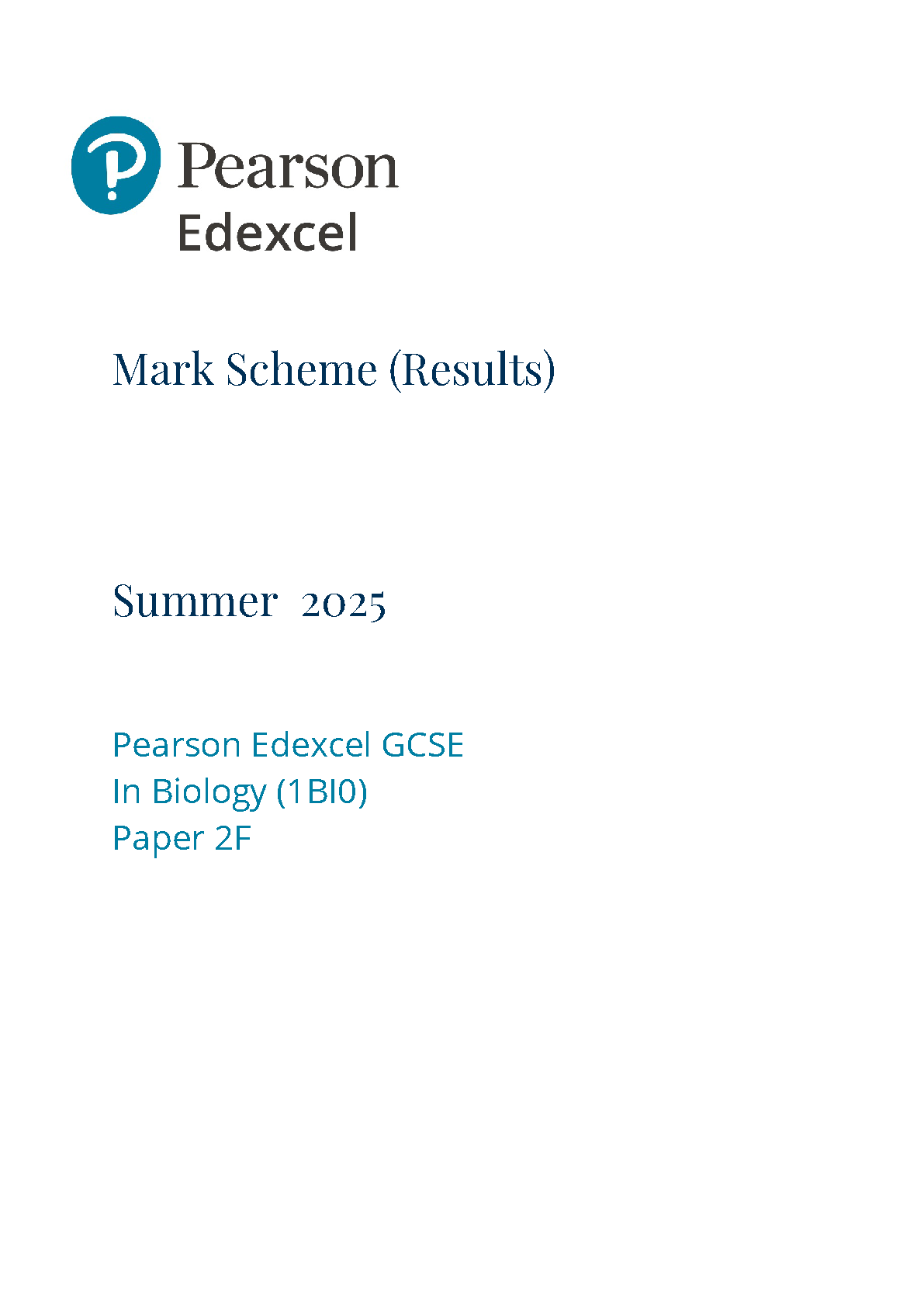 2025 Pearson Edexcel GCSE Biology Mark Scheme Paper 2 (1BI0/2F: Foundation Tier)