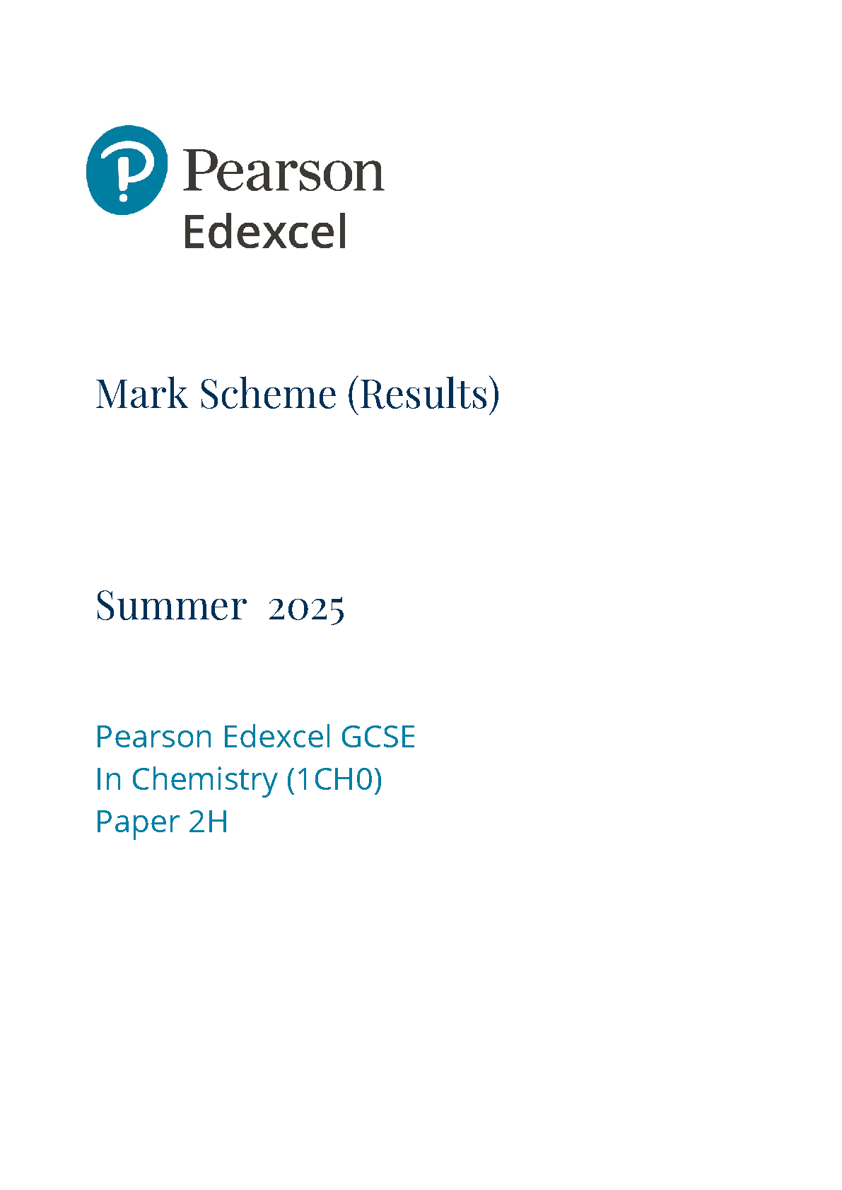 2025 Pearson Edexcel GCSE Chemistry Mark Scheme Paper 2 (1CH0/2H)