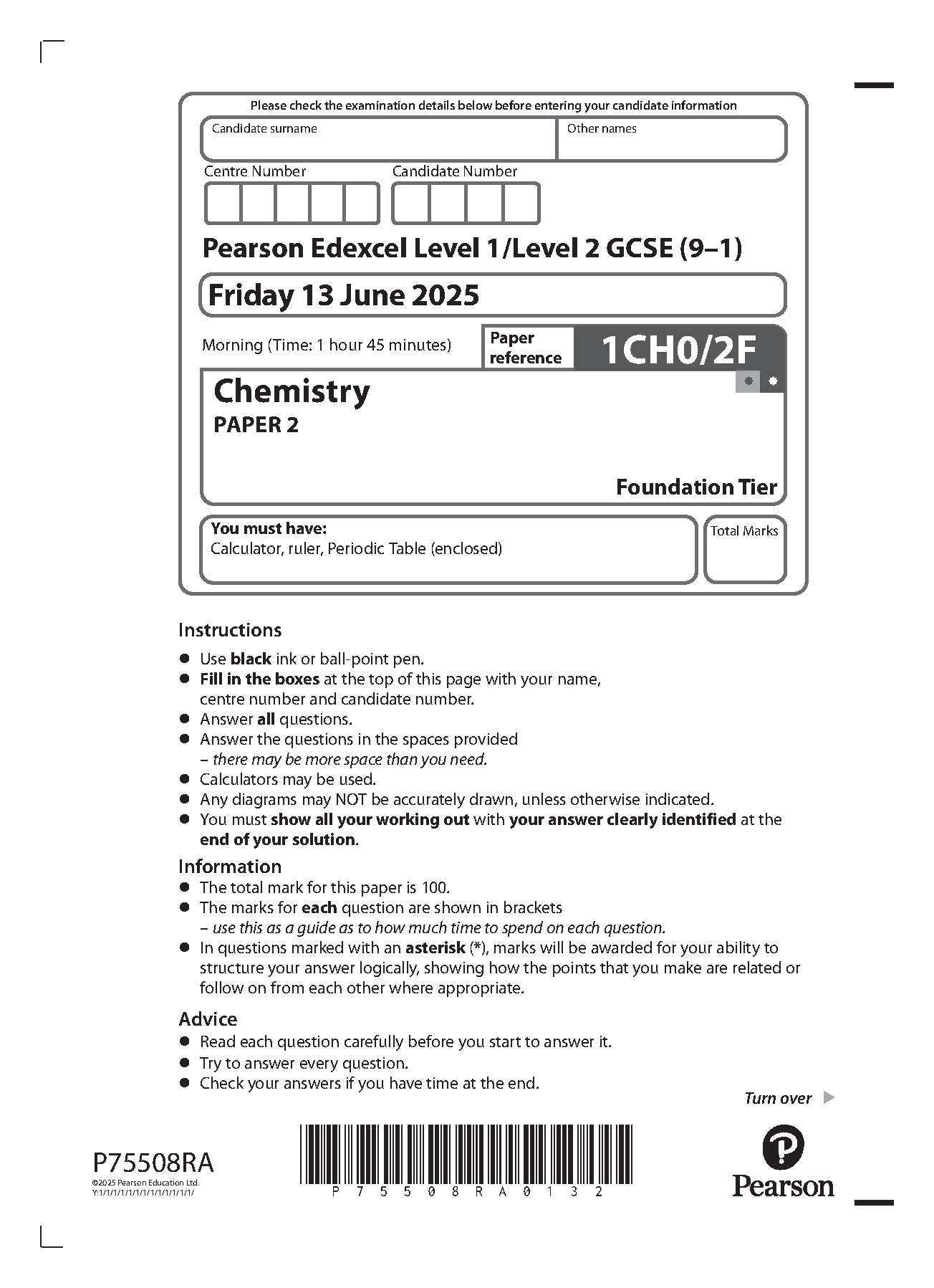 2025 Pearson Edexcel GCSE Chemistry Paper 2 (1CH0/2F: Foundation Tier)