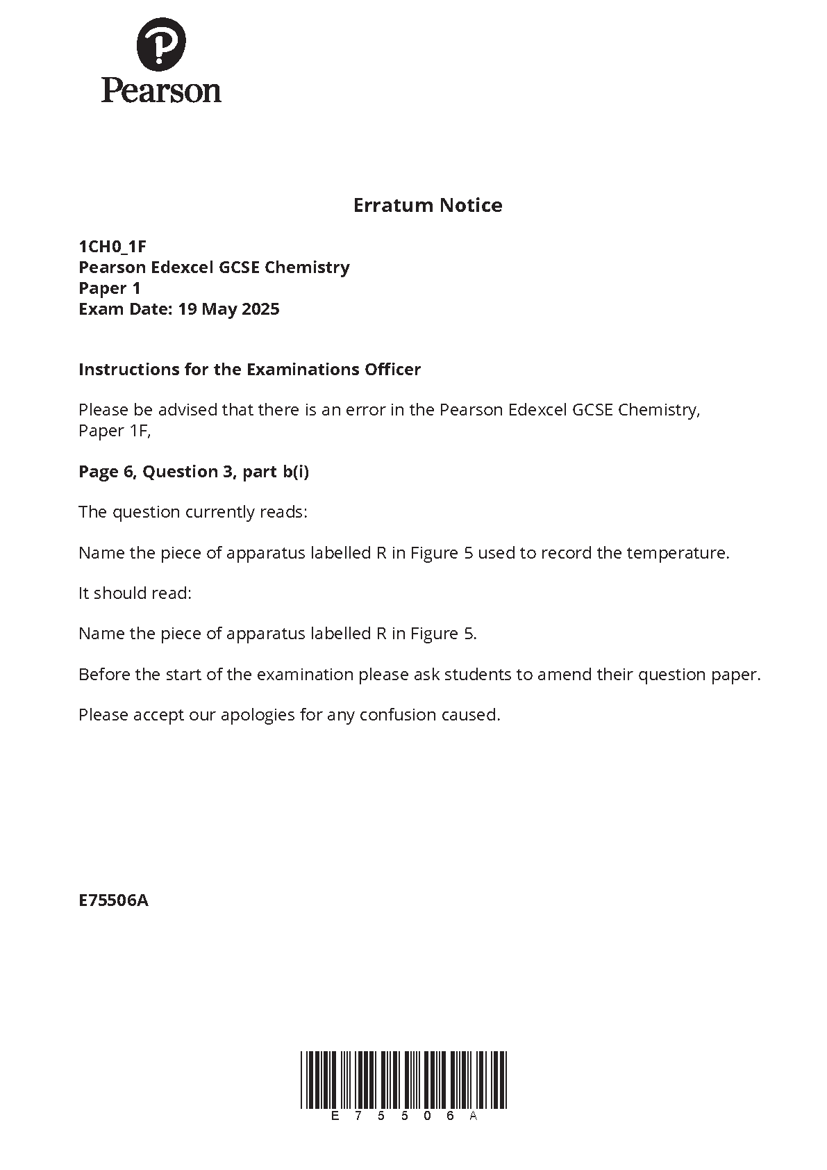2025 Pearson Edexcel GCSE Chemistry Paper 1 (1CH0/1F)